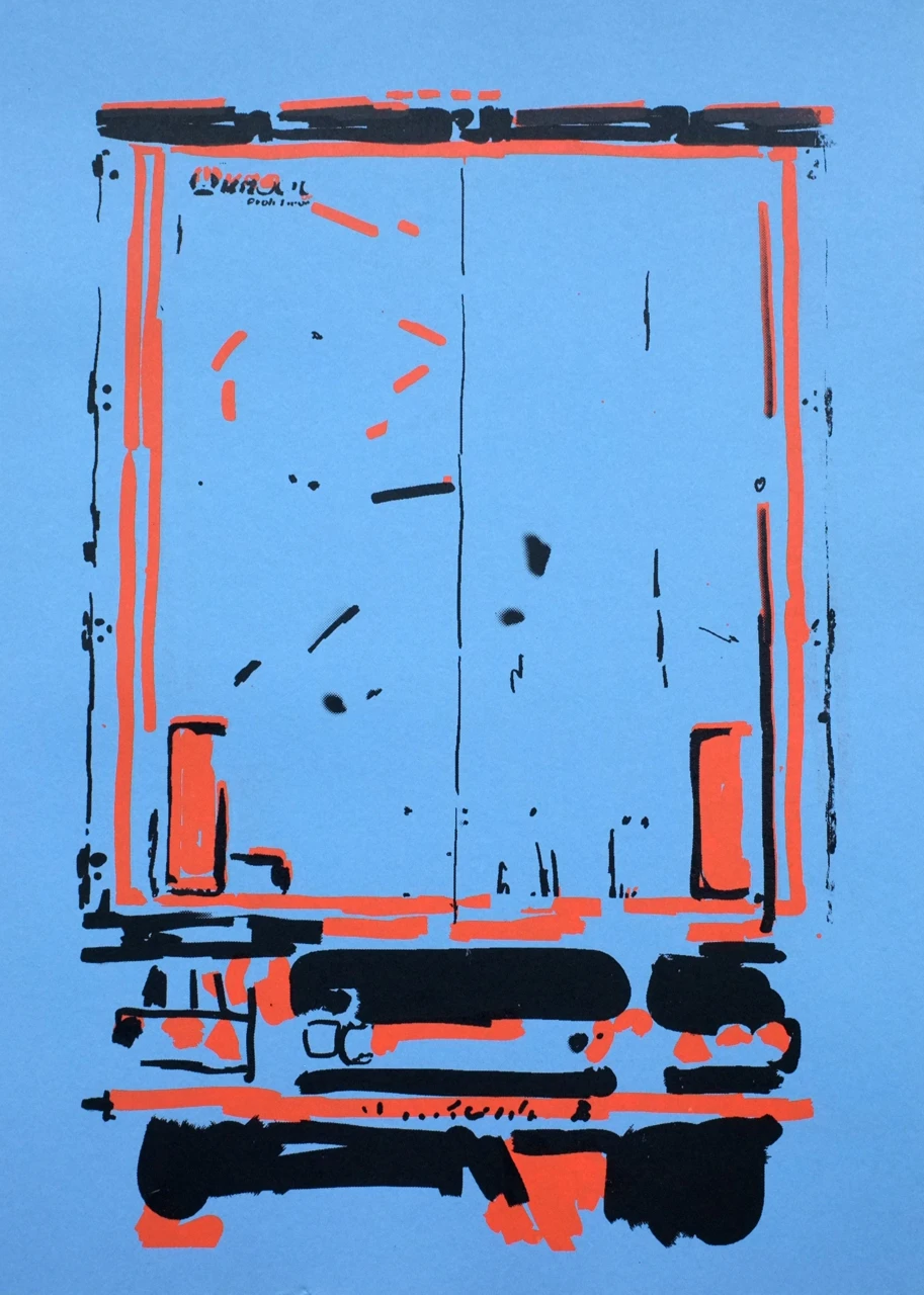 Серия «Фактор фуры» предлагает художественное прочтение повседневного препятствия — задней части грузовика. Используя один и тот же трафарет на фоне белой, синей, тёмно-фиолетовой, ярко-жёлтой и серой бумаги, художник делает привычное чуждым, визуально отсраняет объект, чтобы перевести его из фона в область внимания. Цвет становится ключом к интерпретации: белый — снег и ясность, жёлтый — тревога, синий — ночь, серый — рутина. Через это зритель учится читать препятствие как текст, как дорожную карту. Концепция связана с термином «фактор фуры» (Truck Factor) из управления проектами — внезапный риск, который нельзя предсказать, но можно предусмотреть. Работа не романтизирует ограничения, а предлагает их анализировать, готовиться к манёвру и помнить главное: важно не то, что закрывает обзор, а то, куда ты едешь.
