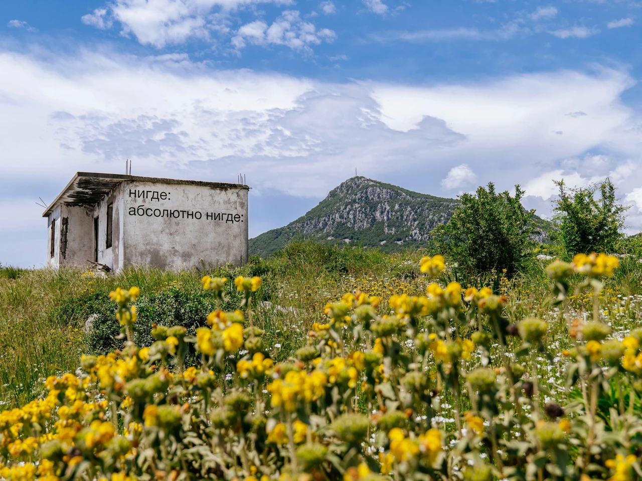 Я часто называю то, что делаю визуальной поэзией, в которой слова рифмуются с местом. В этом сопоставлении рождается художественных эффект. Для меня принципиальную важность имеет локация, это не просто фон для текста, а полноценная часть произведения. Не слой краски, а само пространство – медиум, с которым я работаю. Поэтому при создании работы большую часть времени занимает поиск места, а затем подбор к нему подходящей рифмы. Меня привлекают места содержащие в себе следы времени, некие зияющие пустоты, которые можно заполнить. Как бы пафосно это не звучало, но своими работами, я стремлюсь заполнить пустоту, а не занять место, создать некое поэтическое измерение в пространстве. Просто представьте долгий путь на гору, в результате которого путник видит заброшенный домик и оказывается нигде, абсолютно нигде. Для меня это и есть поэзия жизни.