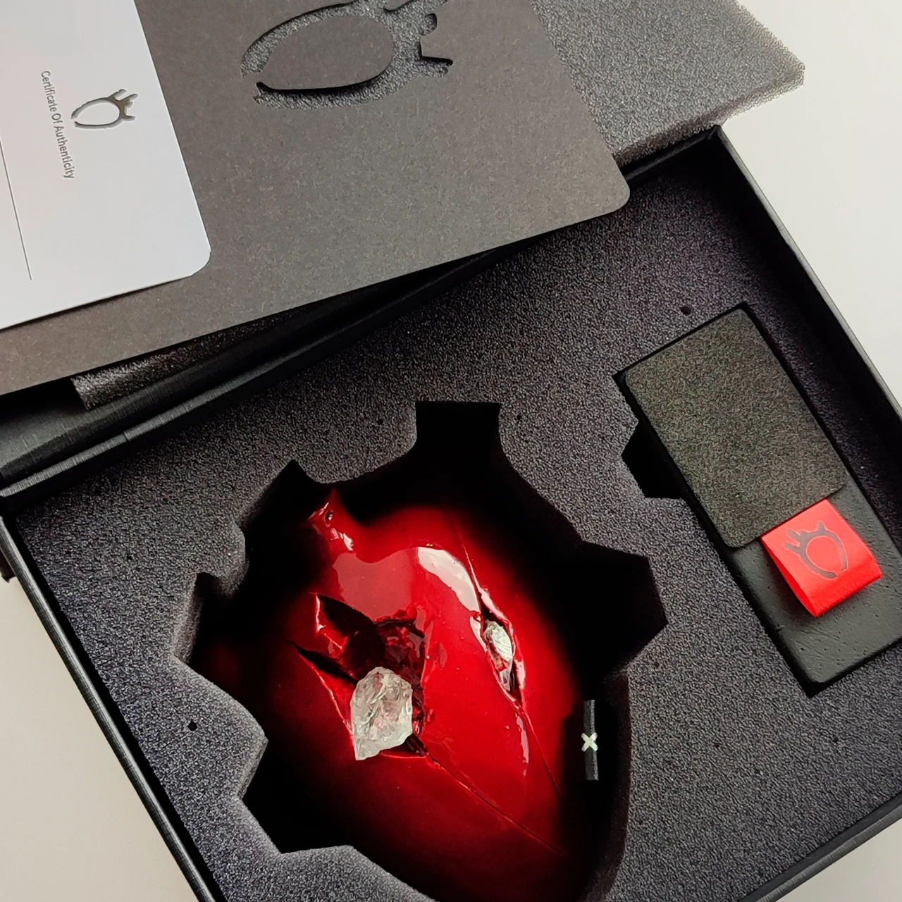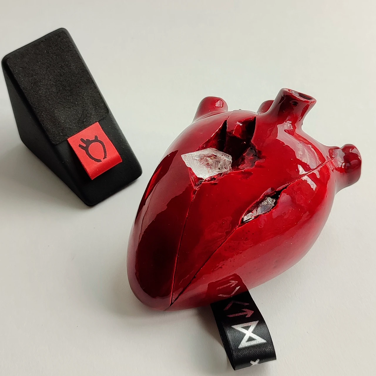 Сердце упаковано в фирменную подарочную коробочку с подставкой, имеет встроенный магнит для постановки в вертикальном положении на подставку.