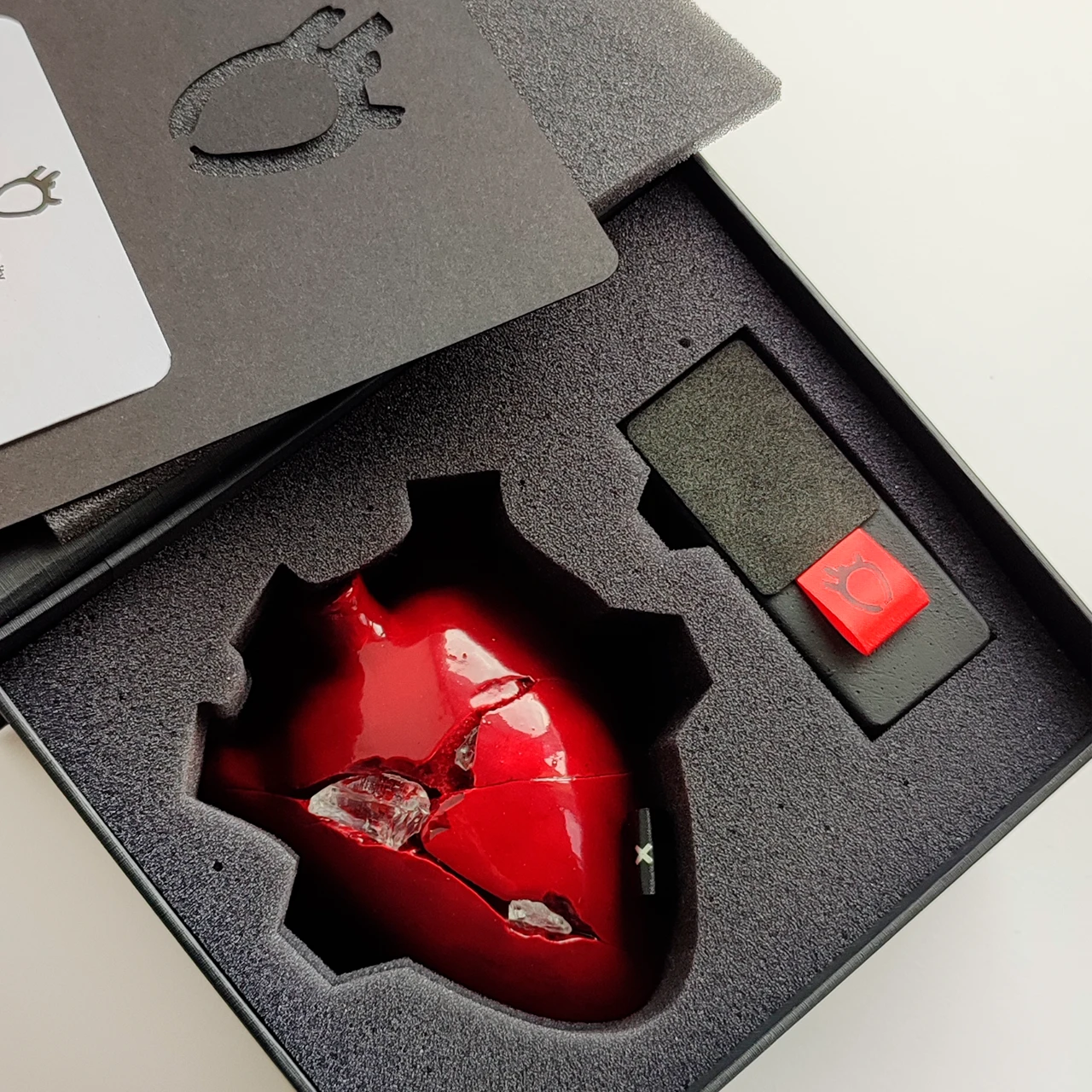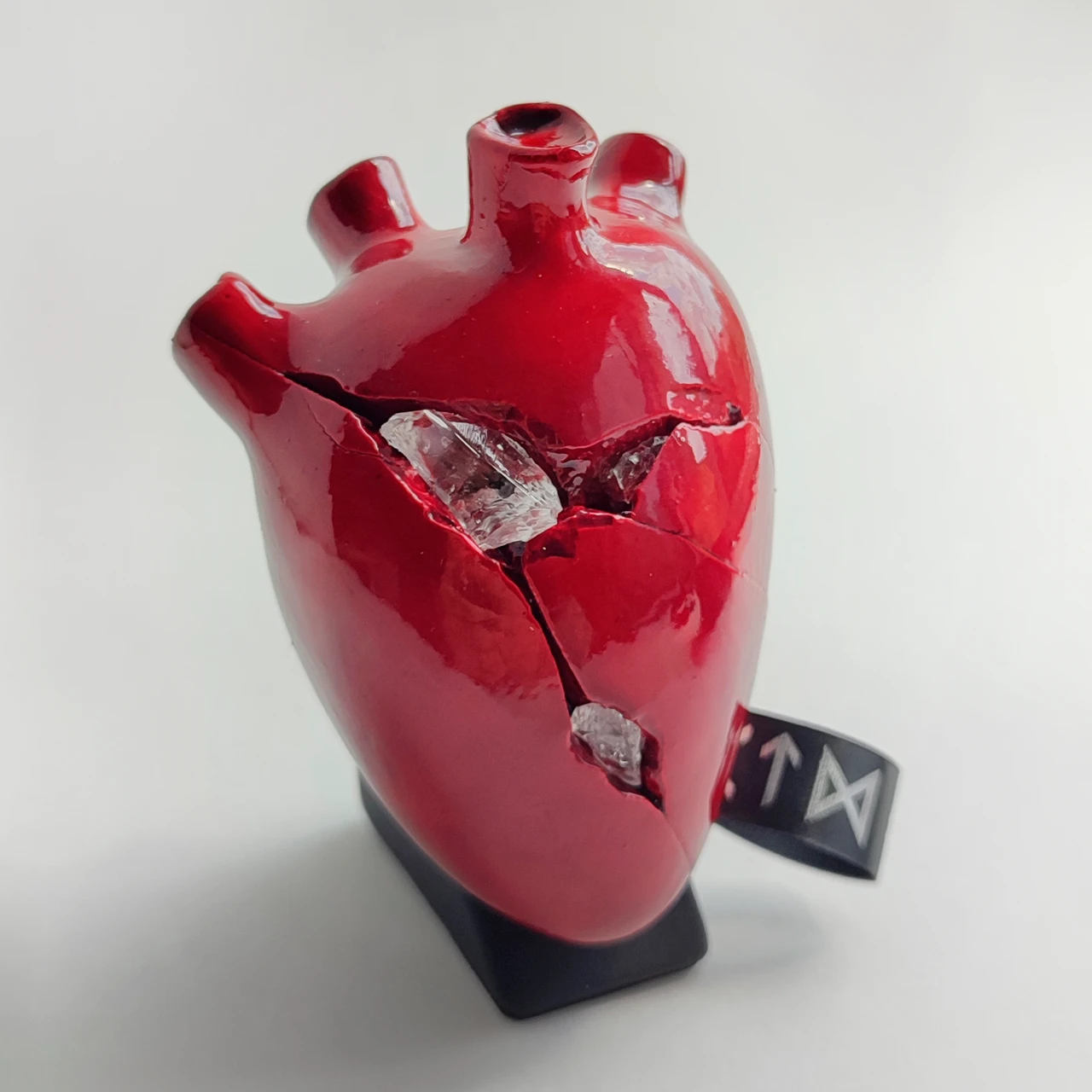 Сердце упаковано в фирменную подарочную коробочку с подставкой, имеет встроенный магнит для постановки в вертикальном положении на подставку.