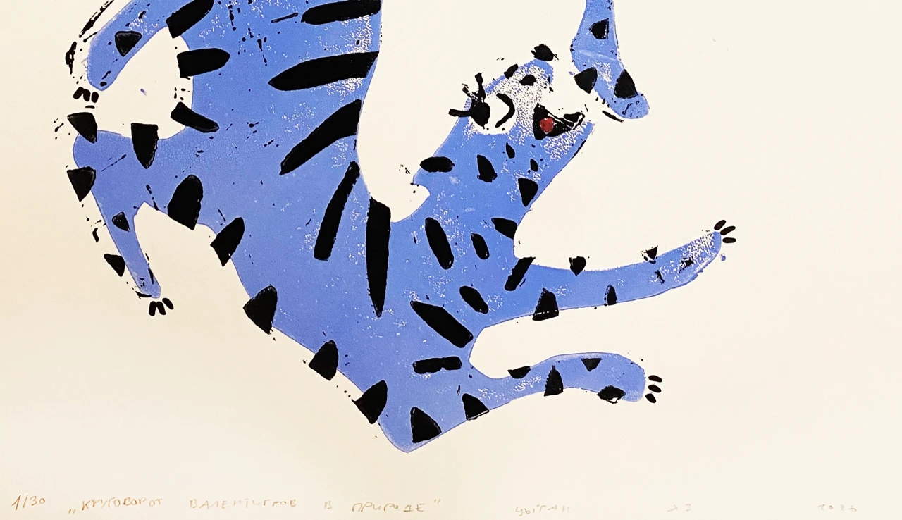 Линогравюра в 2 цвета, формат А3. Также есть в красном цвете.