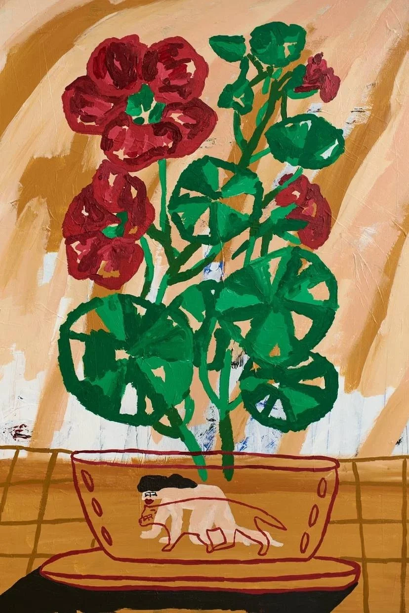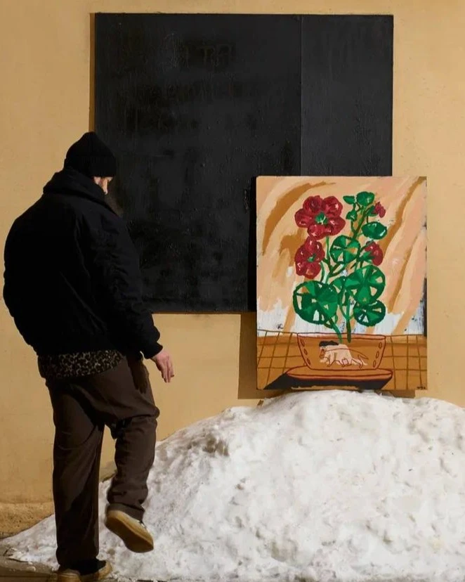 В этой работе цветы рассматриваются не как декоративный элемент, а как форма необходимости. Для девушки они становятся способом сделать повседневную жизнь ярче и ощутимее. Для кота — возможностью сохранить связь с природой, раскрыть свои инстинкты и на время выйти за пределы домашнего пространства.Оба образа сосуществуют в одной бытовой сцене, подчёркивая сходство человеческих и животных потребностей. Картина фиксирует момент тихого взаимодействия с живым, в котором природа выступает не фоном, а условием внутреннего равновесия.