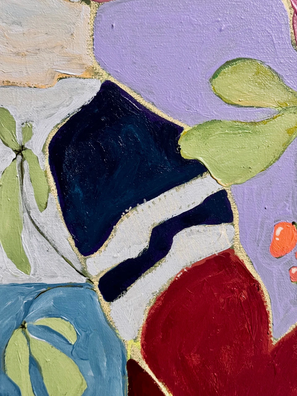 Узнаваемые работы Жени Жари отсылают к коллажам Матисса, цветам Гогена и Хокни. Плоские абстрактные изображения автора стилистически ведут диалог с такими направлениями как Hard-edge painting, SuperFlat Мураками в их наивной интерпретации.