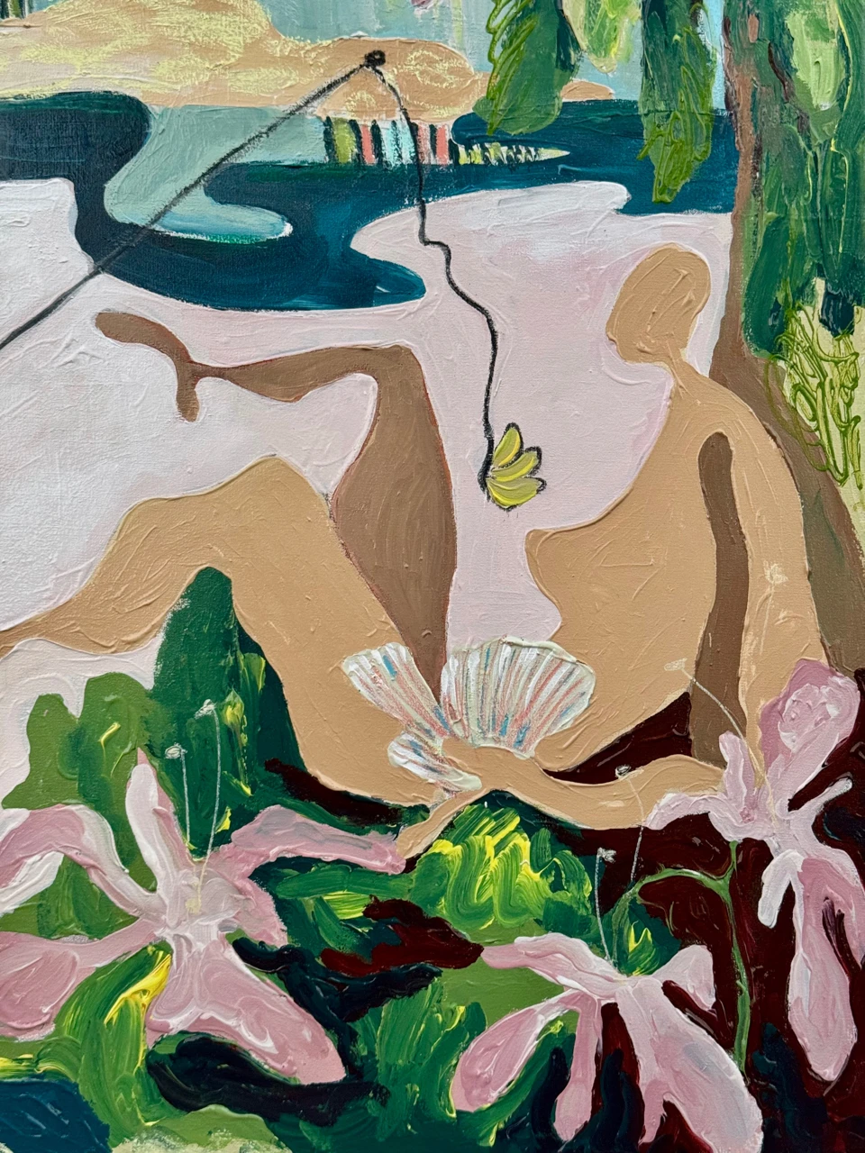 Работа входит в серию автора "Выживут только любовники" и переосмысляет символы рыбака, сетей, удочки, улова во взаимоотношении полов и поиска партнёра – найти своего человека, "закинуть удочку", понравиться. Здесь и флирт, и заигрывание, но и извечный сюжет потерянного рая, связи тела и природы.