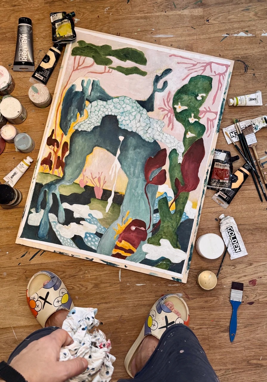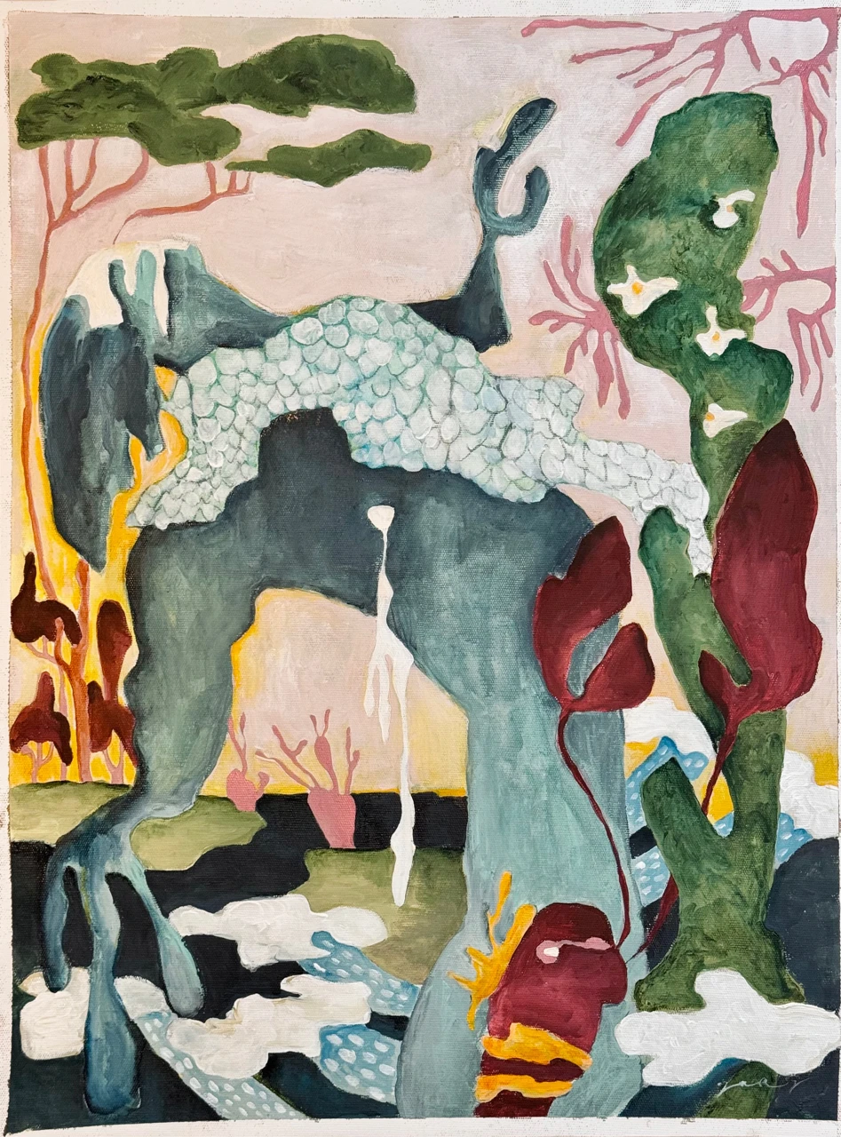 Узнаваемые работы Жени Жари (псевдоним по родной нанайской деревне на Дальнем Востоке) отсылают к коллажам Матисса, цветам Гогена и Хокни, плоские абстрактные изображения автора стилистически ведут диалог с такими направлениями как Hard-edge painting, SuperFlat Мураками в их наивной интерпретации.