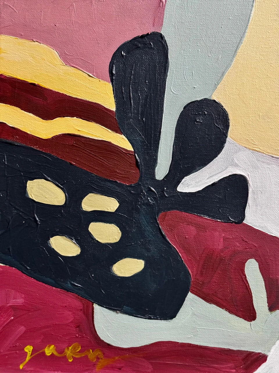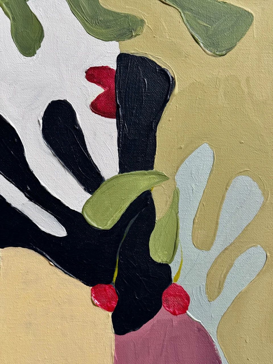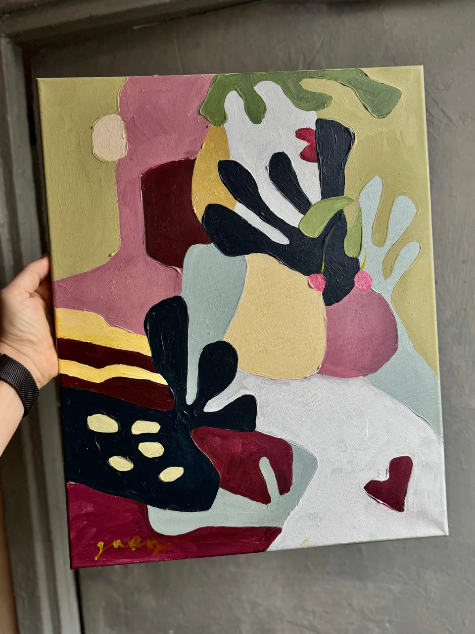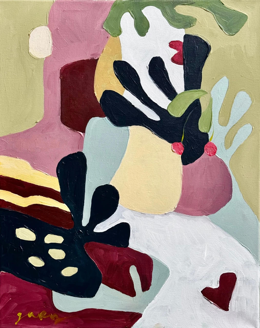Узнаваемые работы Жени Жари отсылают к коллажам Матисса, цветам Гогена и Хокни. Плоские абстрактные изображения автора стилистически ведут диалог с такими направлениями как Hard-edge painting, SuperFlat Мураками в их наивной интерпретации.