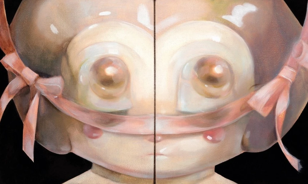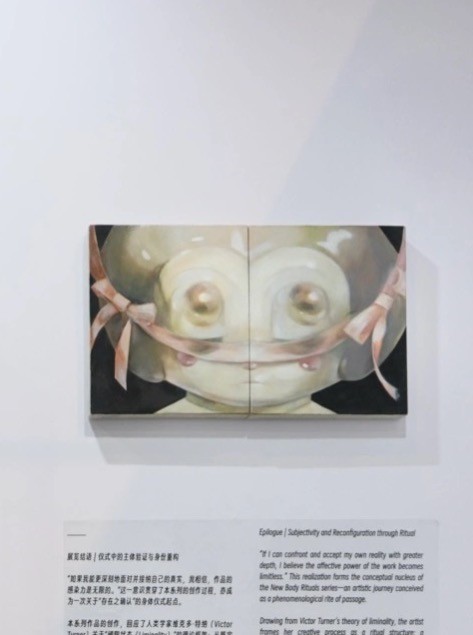 Эта работа сосредоточена на человеческой фигуре с фарфоровой текстурой: её глянцевая и хрупкая поверхность олицетворяет двойственную природу идентичности в современном обществе — тщательно сконструированную, но по сути уязвимую. Фон написан с использованием пигмента Black 3.0 — минерального пигмента, разработанного британским брендом. Благодаря его способности поглощать почти весь свет, создаётся экстремально матовое черное пространство, в котором фигура как будто подвешена в абстрактной, психологической реальности.