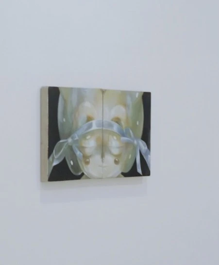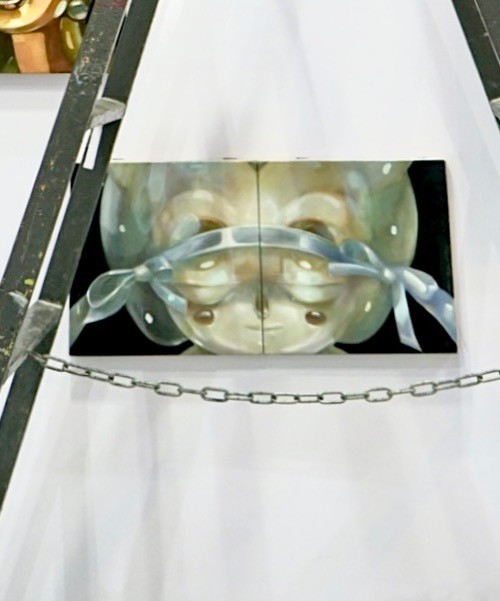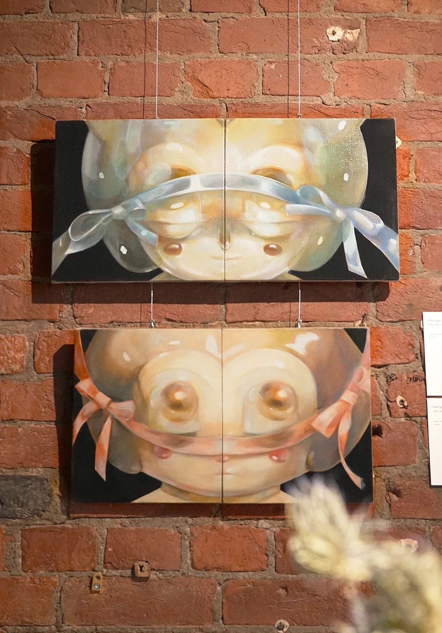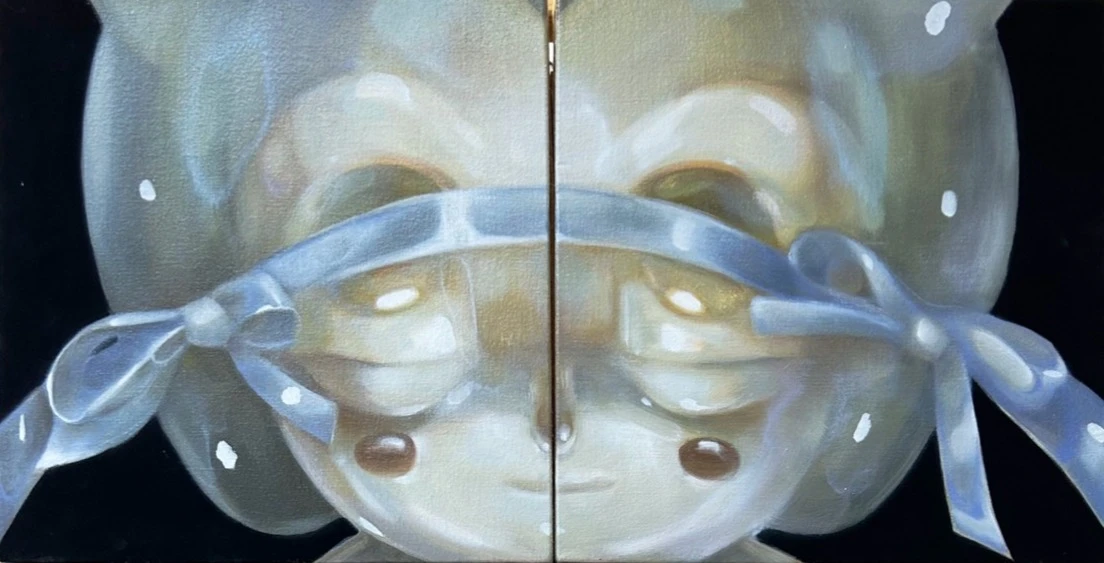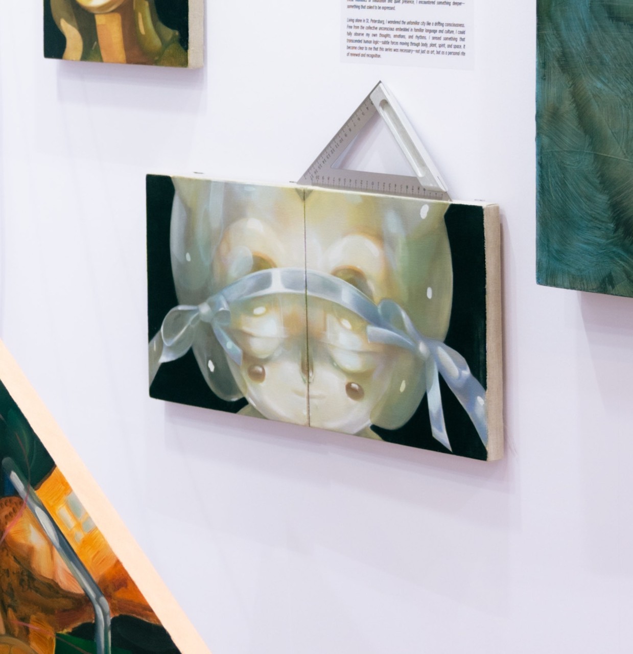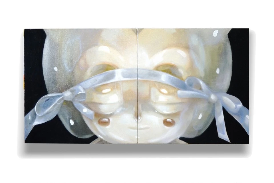 Эта работа сосредоточена на человеческой фигуре с фарфоровой текстурой: её глянцевая и хрупкая поверхность олицетворяет двойственную природу идентичности в современном обществе — тщательно сконструированную, но по сути уязвимую. Фон написан с использованием пигмента Black 3.0 — минерального пигмента, разработанного британским брендом. Благодаря его способности поглощать почти весь свет, создаётся экстремально матовое черное пространство, в котором фигура как будто подвешена в абстрактной, психологической реальности.