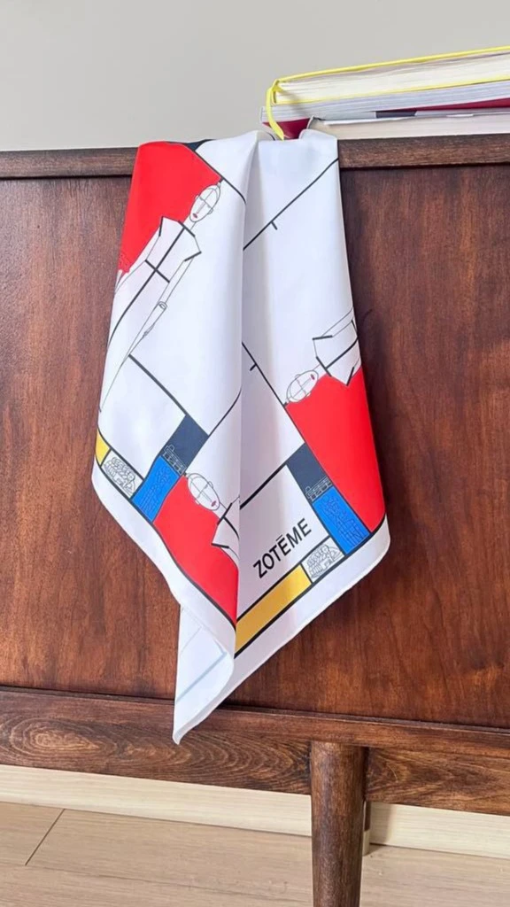Платок ZOTĒME x Виктор Нефёдов — это не просто аксессуар, а визуальное высказывание. В его основе — чистая геометрия, контрастные линии и сочные цветовые акценты. Он отсылает к эстетике модернизма и конструктивизма, но говорит на современном языке.
