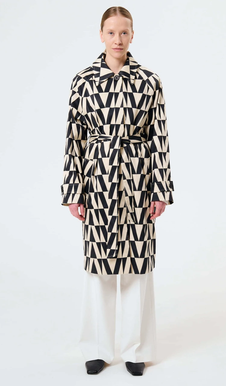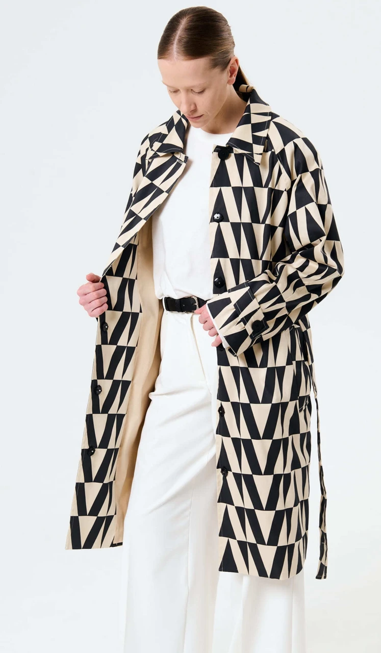 Тренч из хлопка прямого силуэта с поясом — это новое изделие из капсулы "Амазонки авангарда", посвященной русским конструктивистам Любови Поповой и Варваре Степановой.
