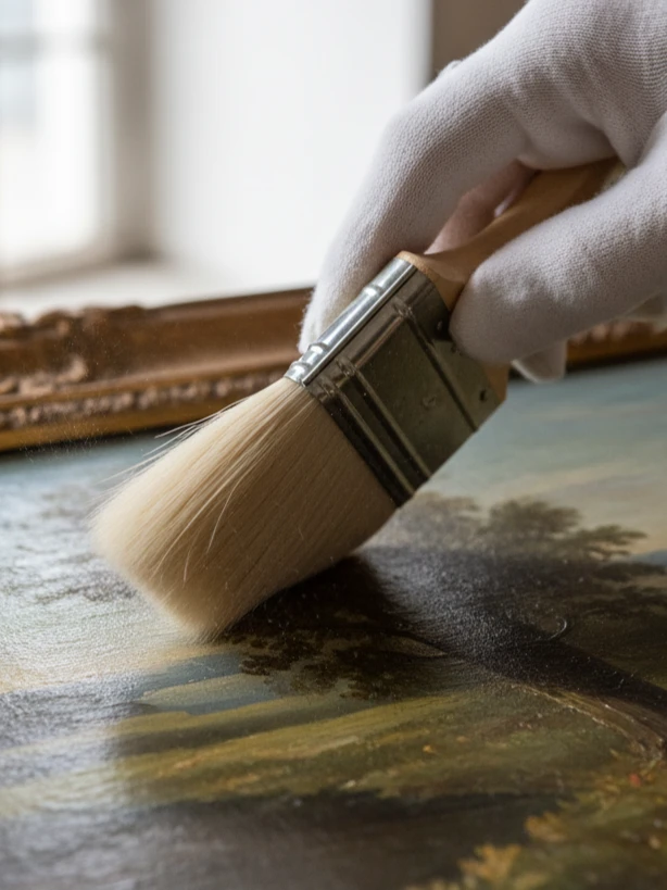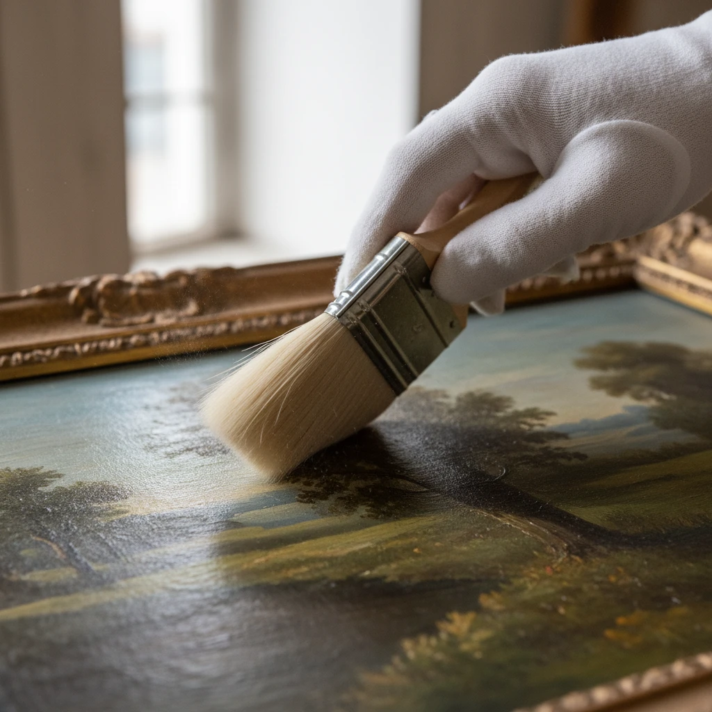 Живописные полотна и графика требуют особенно деликатного обращения. Основное правило — минимизация физического контакта. Пыль с поверхности картины, написанной маслом или акрилом и покрытой лаком, следует удалять очень аккуратно, используя мягкую кисть из натурального ворса, например, беличьего или колонкового. Категорически запрещается применять влажные ткани, губки или любые чистящие средства, поскольку они могут повредить красочный слой и лаковое покрытие. Если на поверхности видны более серьезные загрязнения, потускнение лака или признаки плесени, единственно верным решением будет обращение к профессиональному реставратору.