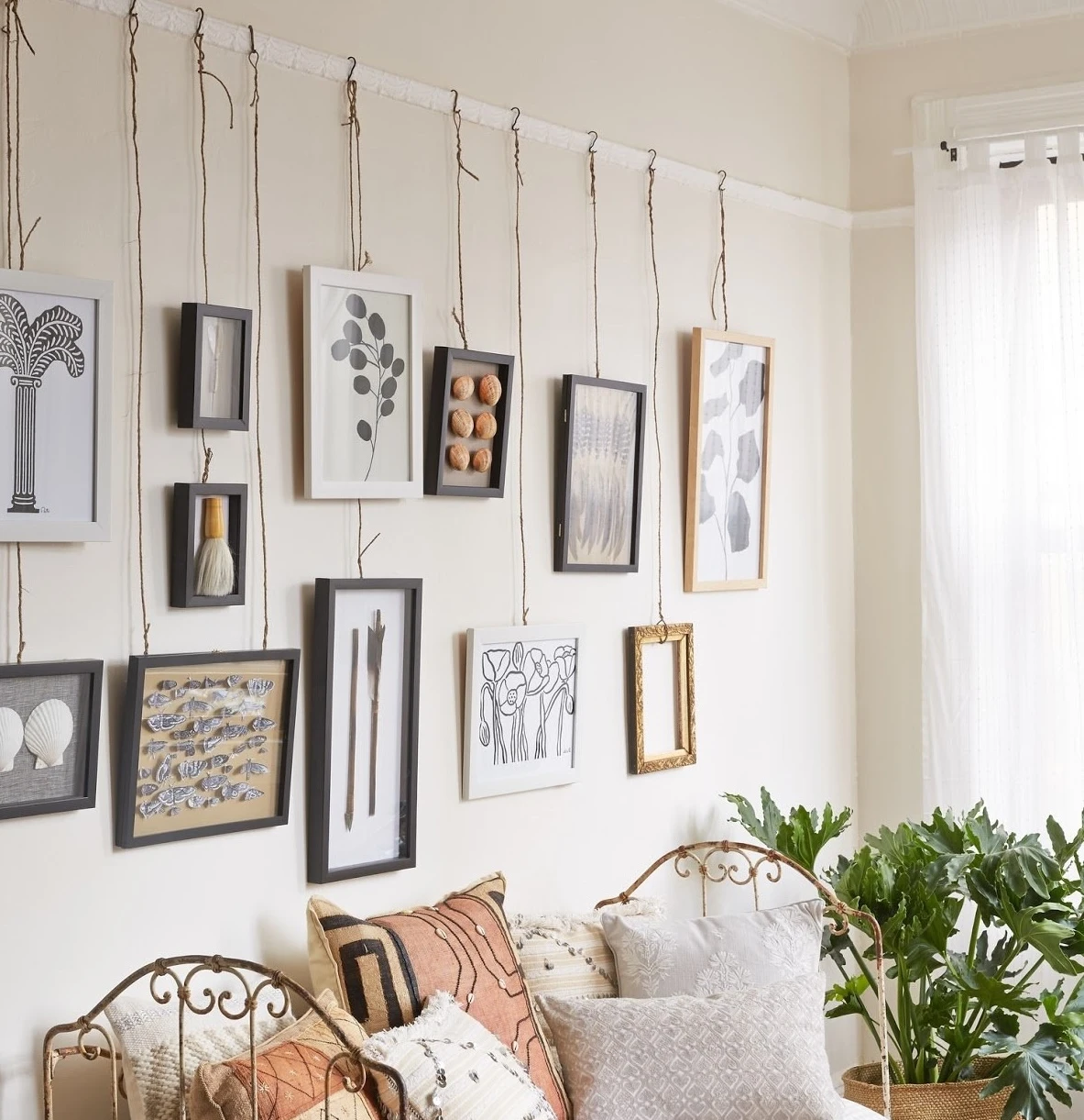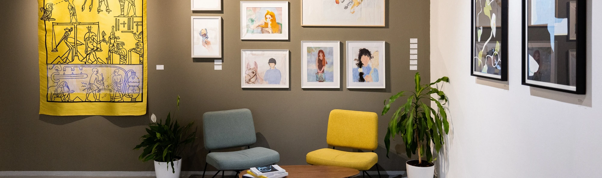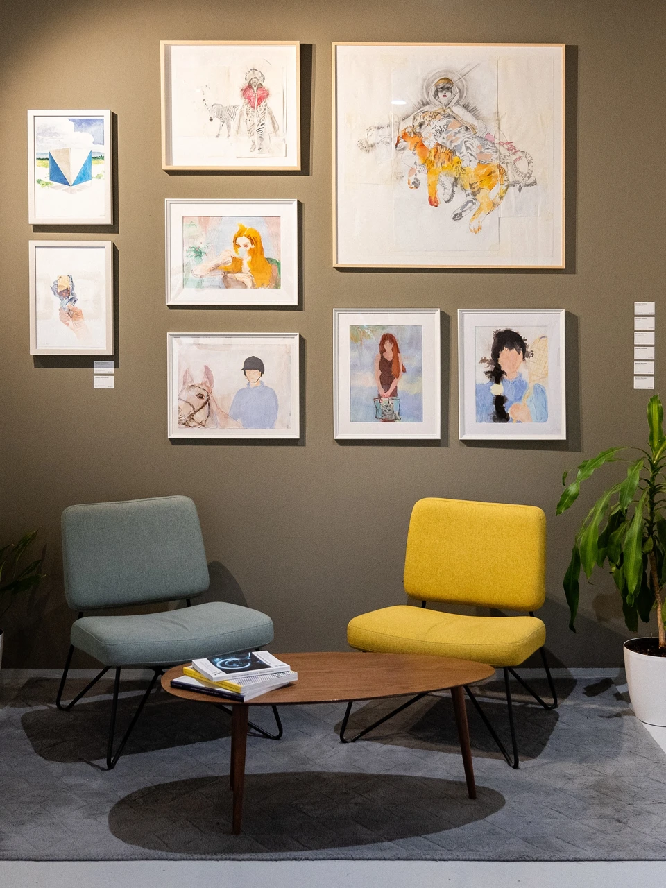 Для частой смены экспозиции удобны магнитные держатели — они позволяют аккуратно размещать работы в интерьере без повреждения отделки стен. Магниты удобны еще и тем, что предметы искусства можно легко снять со стены, переместить на другое место или освободить пространство для размещения новых работ. Стоит помнить, что для разного типа стен требуется разный крепеж: для бетонных стен нужны анкерные болты, для гипсокартона — специальные дюбели-«бабочки», а если хочется избежать лишних отверстий, помогут рельсовые подвесные системы.