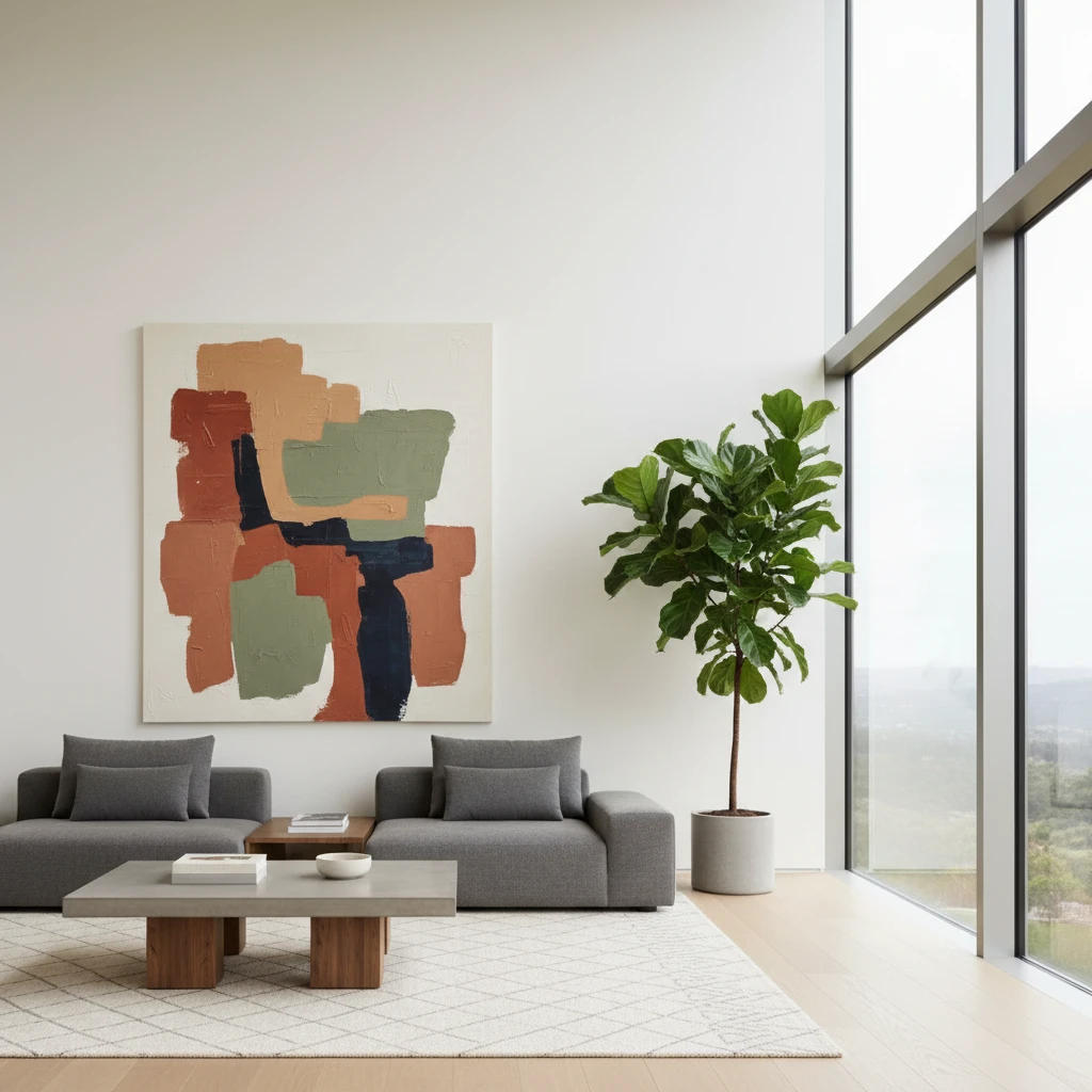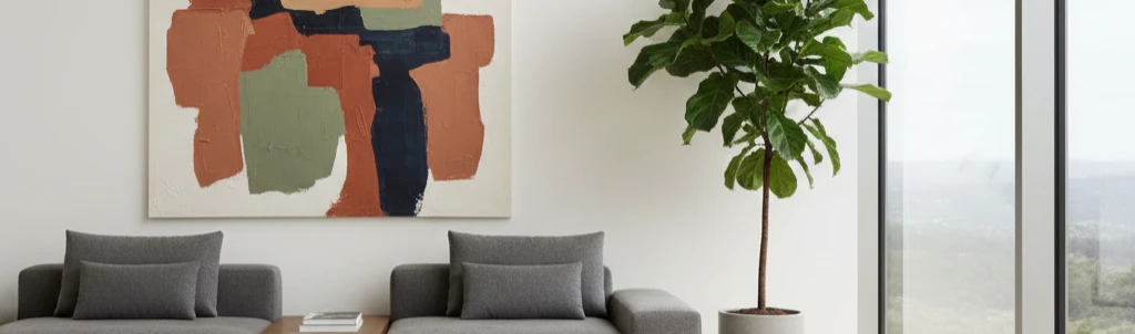 Ничто так не нарушает гармонию, как неверно выбранный масштаб. Крупноформатное, экспрессивное полотно требует соразмерного ему растительного компаньона, который не потеряется на его фоне, а вступит в равноправный диалог. Маленький горшок с суккулентом у подножия огромной картины создаст ощущение дисбаланса и сиротливости. И наоборот, излишне массивное растение, такое как взрослая пальма, может визуально "задавить" небольшую графическую работу, лишив ее воздуха и значимости. Создавая гармоничное пространство с растениями, важно мыслить категориями композиционных центров. Если главным героем выступает произведение искусства, то растение должно играть роль второго плана, обрамляя и поддерживая его. Если же вы хотите знать, как вписать картину в интерьер с цветами, где доминирует крупное растение, то подбирайте искусство, способное выдержать такое соседство — возможно, это будет серия из нескольких небольших работ, которые вместе создадут соразмерное визуальное пятно.