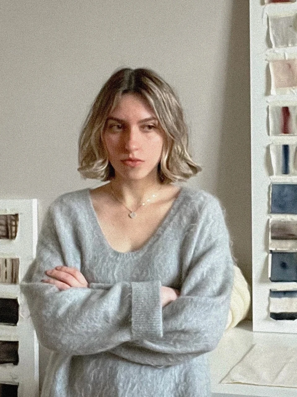 Моя основа — ткань. Я училась на дизайнера одежды, и ткань была первым материалом, через который я думала. Теперь я работаю с ней иначе: она становится холстом, телом, полем. Так что сейчас это шифон, лен, шелк, легкие и суровые ткани, экспериментальный текстиль, светлое дерево. С этими материалами нельзя быть небрежной, в них все видно — каждый жест, каждую нерешенность. Также хочу попробовать работать с пространствами — возможно, архитектурно.