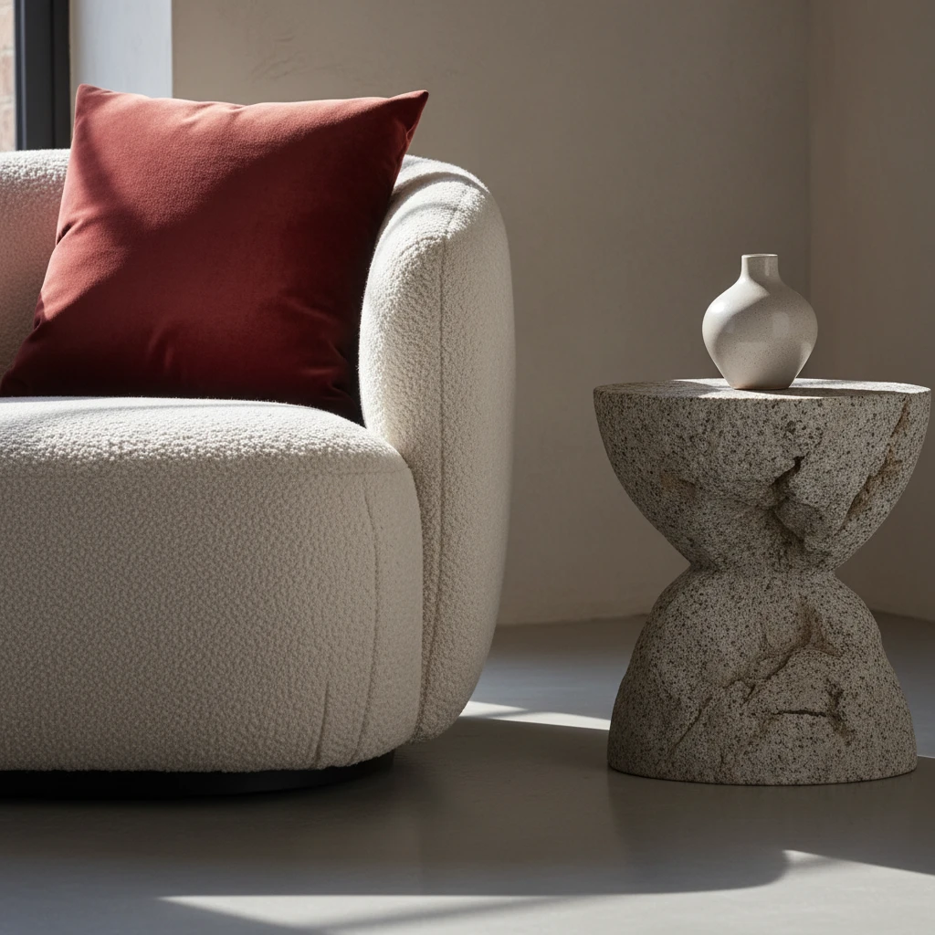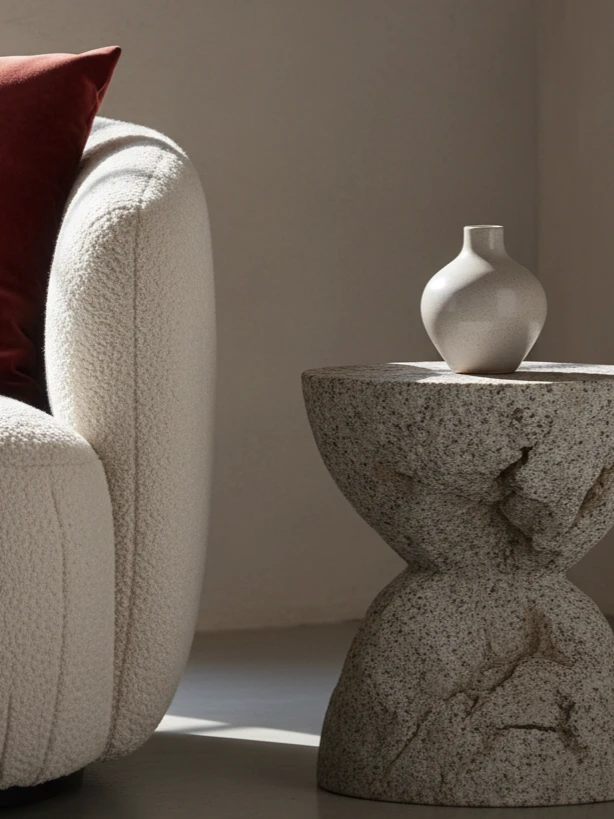В мире, где доминирует цифровое взаимодействие, возрастает ценность физических ощущений. Дизайнеры активно используют этот прием, создавая визуально сдержанные, но тактильно богатые интерьеры. Акцент смещается с ярких цветов на глубину и сложность фактур. Гладкий холодный металл соседствует с теплым шероховатым деревом, мягкий бархат — с грубым льном, а полированный камень — с рельефной штукатуркой. Такой многослойный подход делает пространство более обволакивающим, уютным и сложным для восприятия. Игра с фактурами позволяет создавать выразительные и чувственные композиции даже в рамках монохромной палитры, добавляя интерьеру глубины и характера.