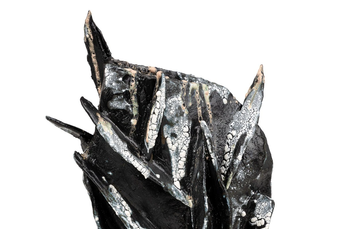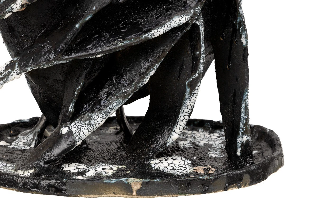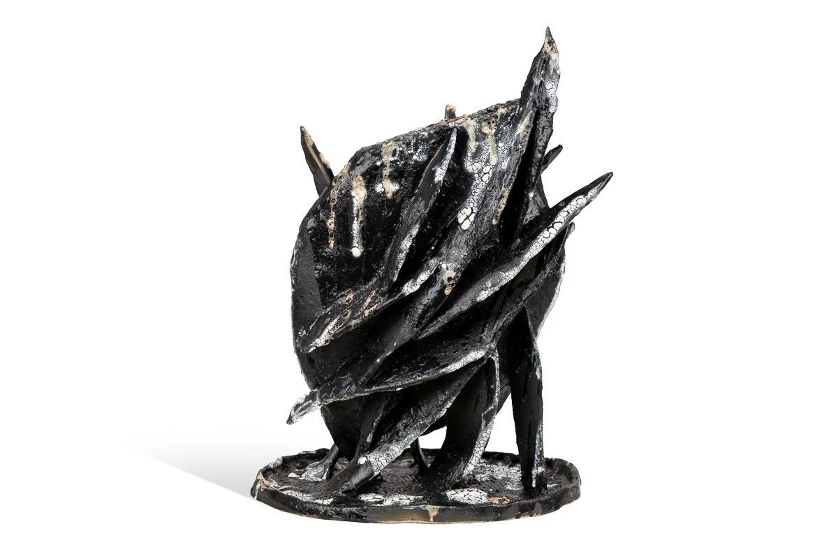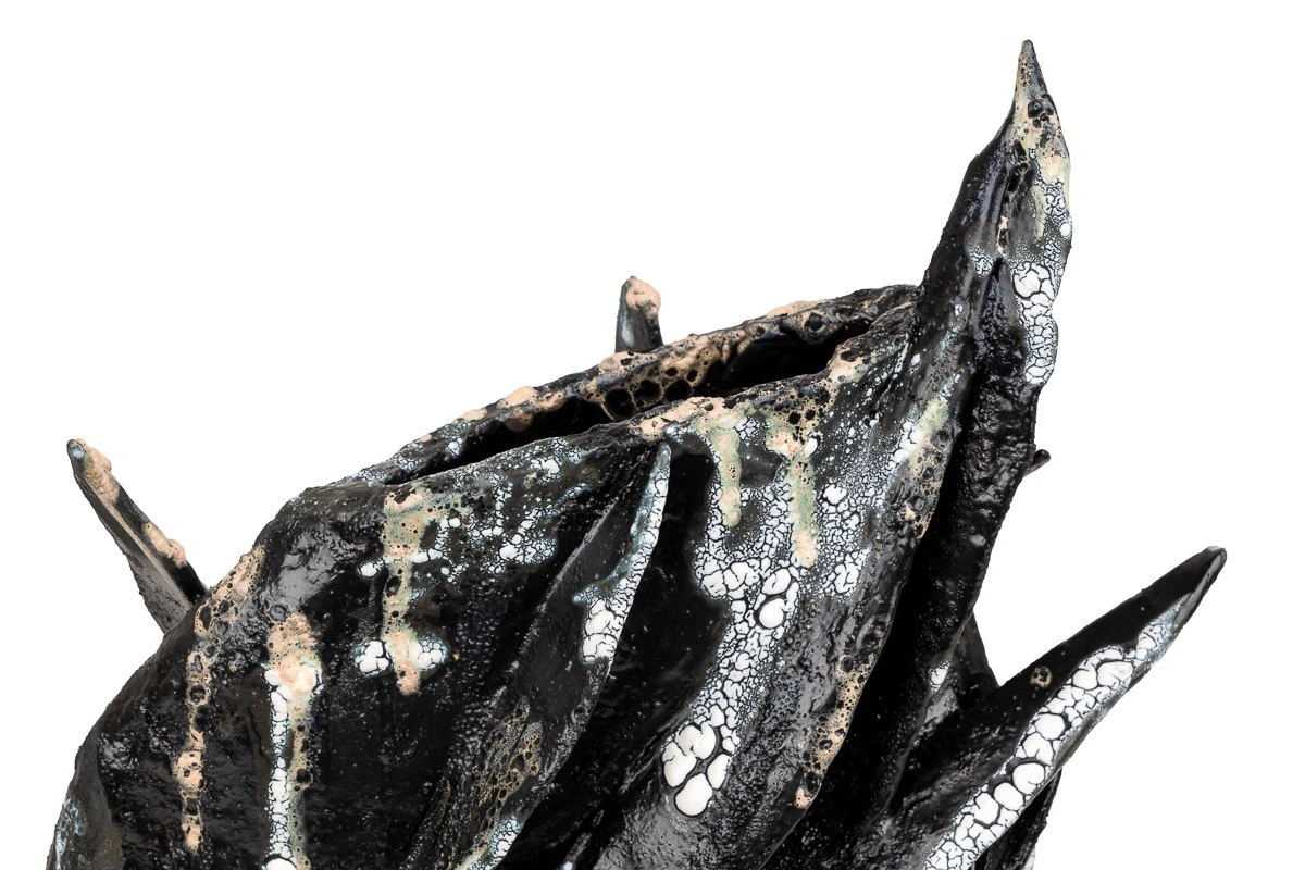 Еще одна совместная работа в нашей студии: Дуленко Насти и Сережи Уколова. Работа сделана из шамота и покрыта в несколько слоем различными глазурями. Внутри есть отверстие, возможно использование под сухоцветы. Арт объект динамический, активный.