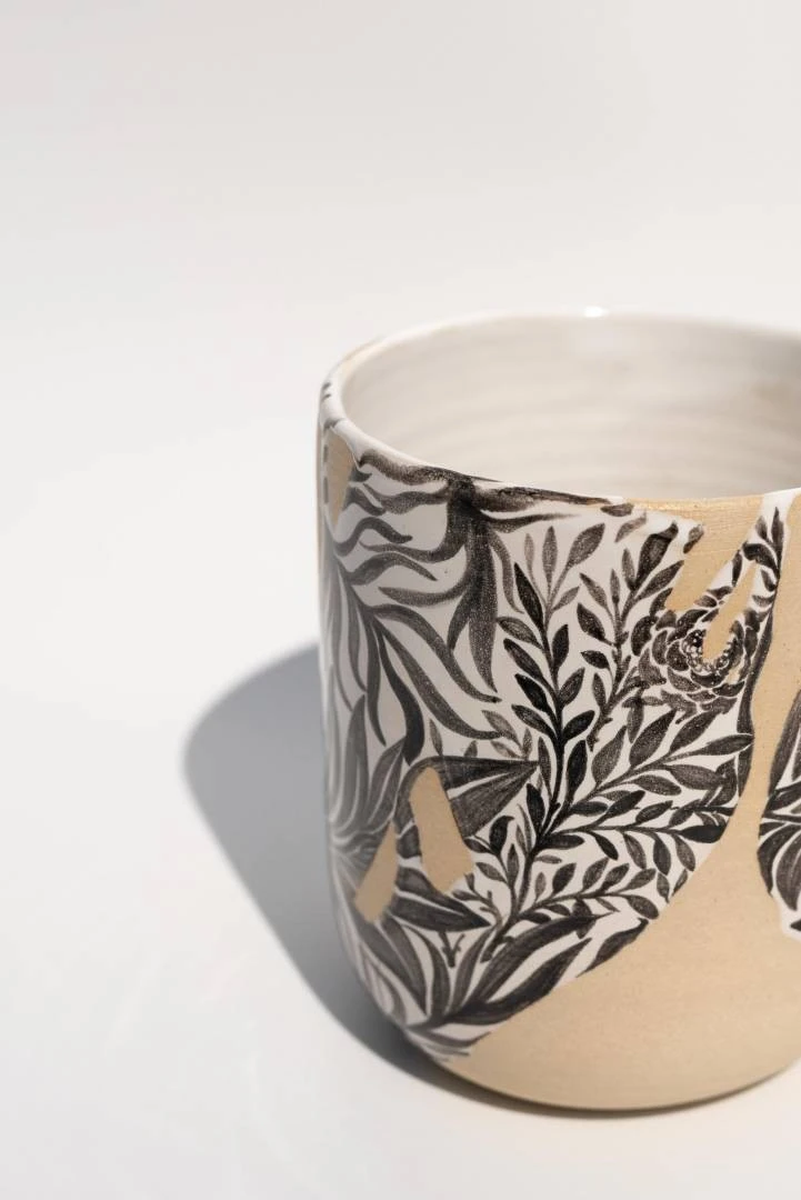 Мои работы не полностью покрыты керамической глазурью. Эта идея пришла мне в голову, когда в очередной раз в музее я смотрела на древние керамические сосуды и увидела нечто привлекательное в том, что утраченная часть сосуда восстановлена реставраторами, но она совершенно пуста. Что же изобразил в этом месте художник той эпохи? Это загадка. А я люблю загадки и решила воспроизвести этот прием в своих работах. Я заливаю изделия глазурью лишь частично, и зачастую глазурь рисует свой рисунок и определяет, что будет утрачено, а что нет. После того, как я покрыла изделие глазурью, я убираю лишние пятна, которые выглядят не очень живо. После этого уже наношу сюжет с помощью подглазурных красок и пигментов.