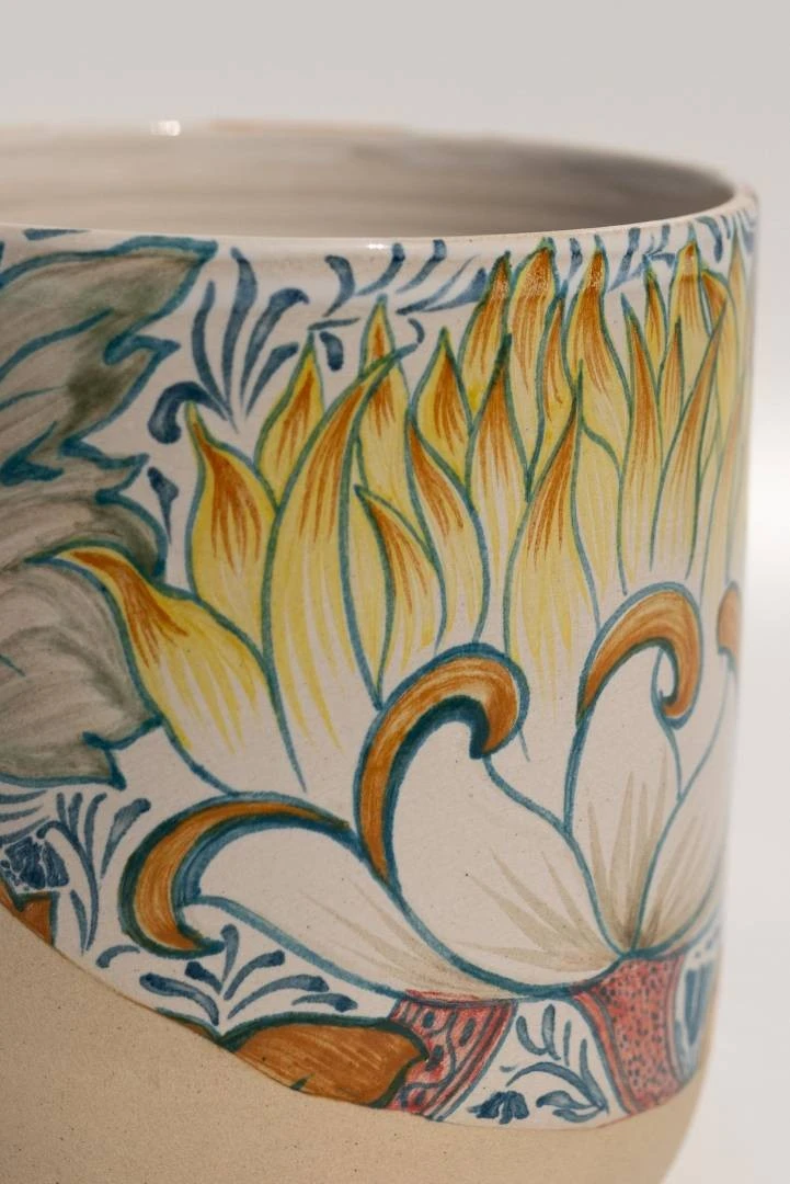Мои работы не полностью покрыты керамической глазурью. Эта идея пришла мне в голову, когда в очередной раз в музее я смотрела на древние керамические сосуды и увидела нечто привлекательное в том, что утраченная часть сосуда восстановлена реставраторами, но она совершенно пуста. Что же изобразил в этом месте художник той эпохи? Это загадка. А я люблю загадки и решила воспроизвести этот прием в своих работах. Я заливаю изделия глазурью лишь частично, и зачастую глазурь рисует свой рисунок и определяет, что будет утрачено, а что нет. После того, как я покрыла изделие глазурью, я убираю лишние пятна, которые выглядят не очень живо. После этого уже наношу сюжет с помощью подглазурных красок и пигментов.
