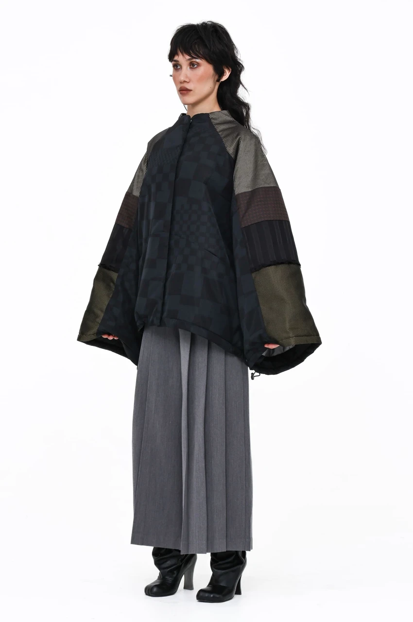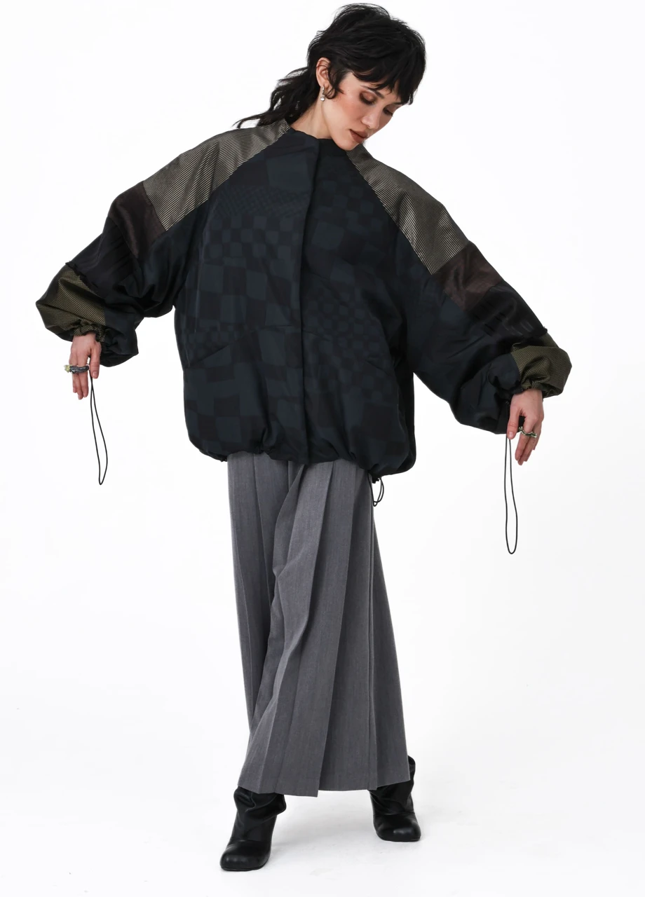 Перед вами пазл-бомбер, один из дропа утепленной пазл-одежды бренда Katia Kozyreva. Всего в серии 16 бомберов и 6 длинных утепленных кимоно.