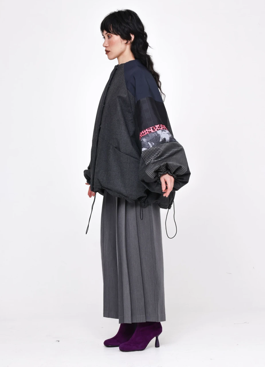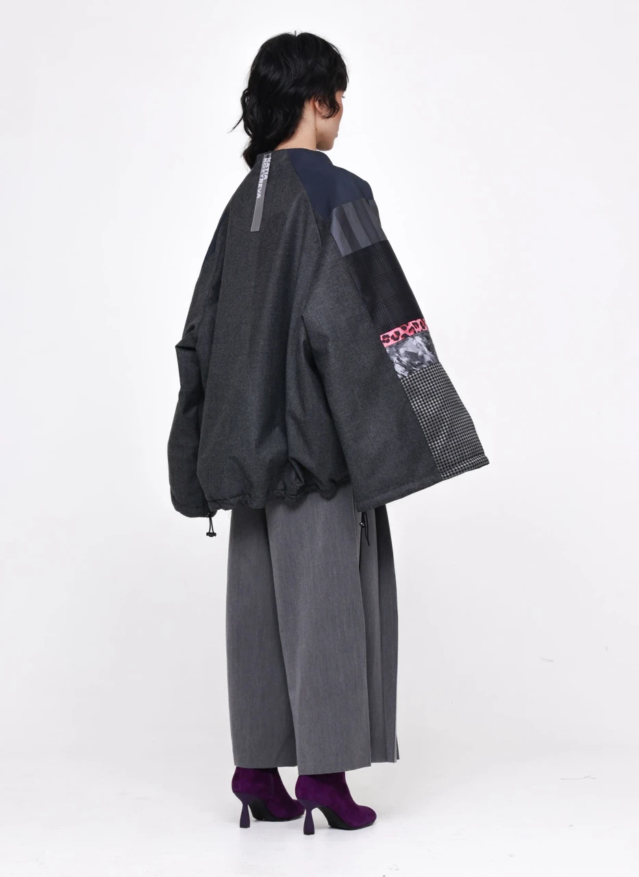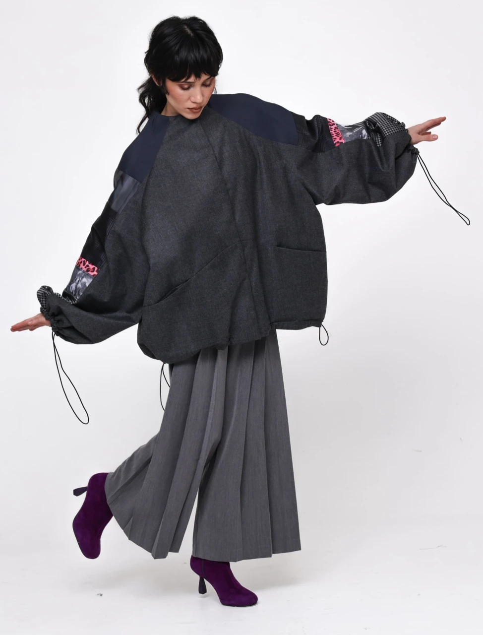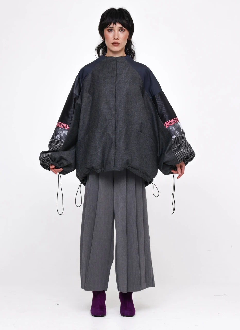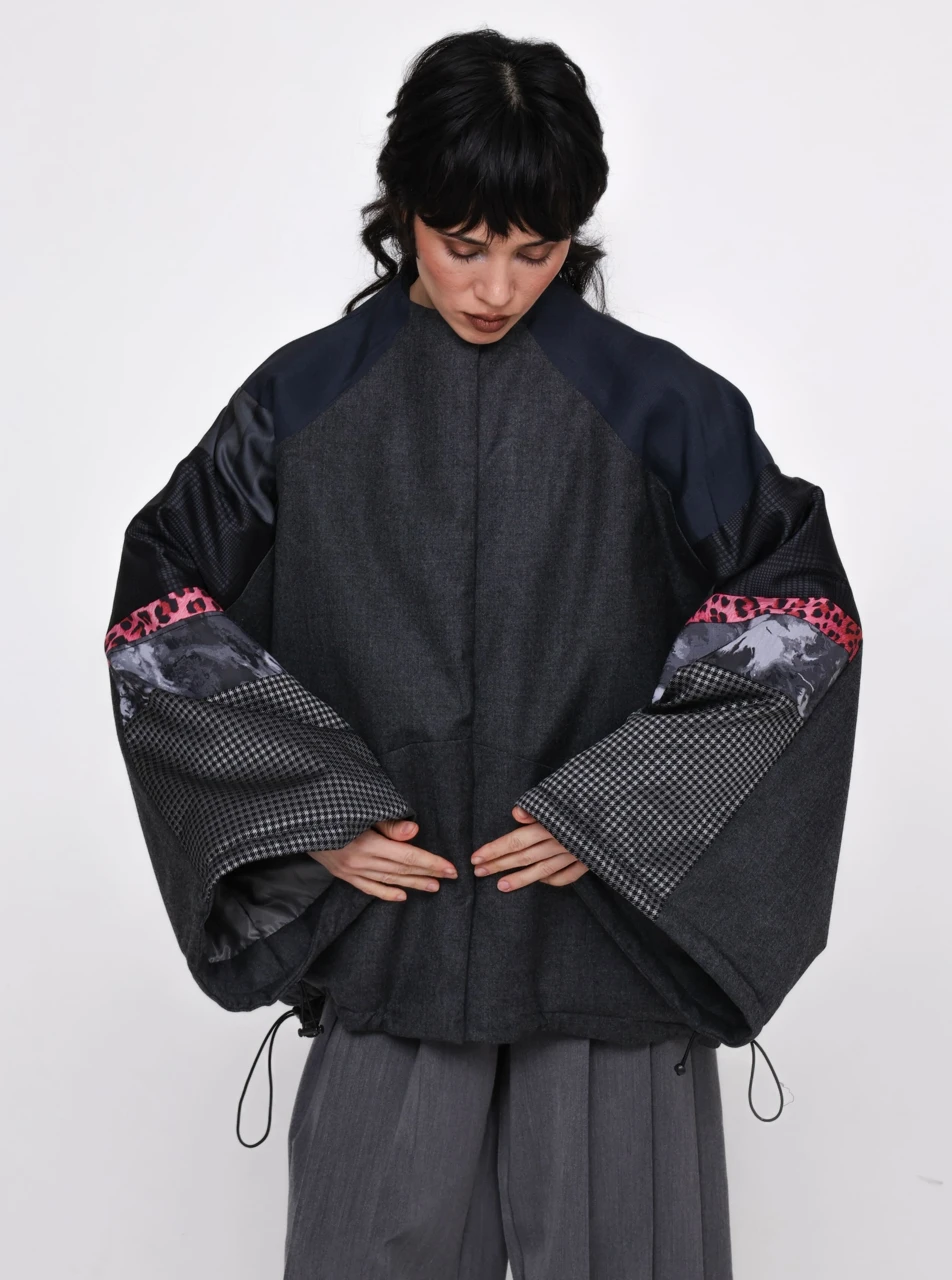 Перед вами пазл-бомбер, один из дропа утепленной пазл-одежды бренда Katia Kozyreva. Всего в серии 16 бомберов и 6 длинных утепленных кимоно. Рукава каждого изделия собраны вручную Катей Козыревой из разных кусочков ткани, как пазл. Повторяющихся нет! Изделие имеет кулиски по низу и на рукавах. Вы можете играть, создавая объемные формы, или носить свободно, не используя кулиску.