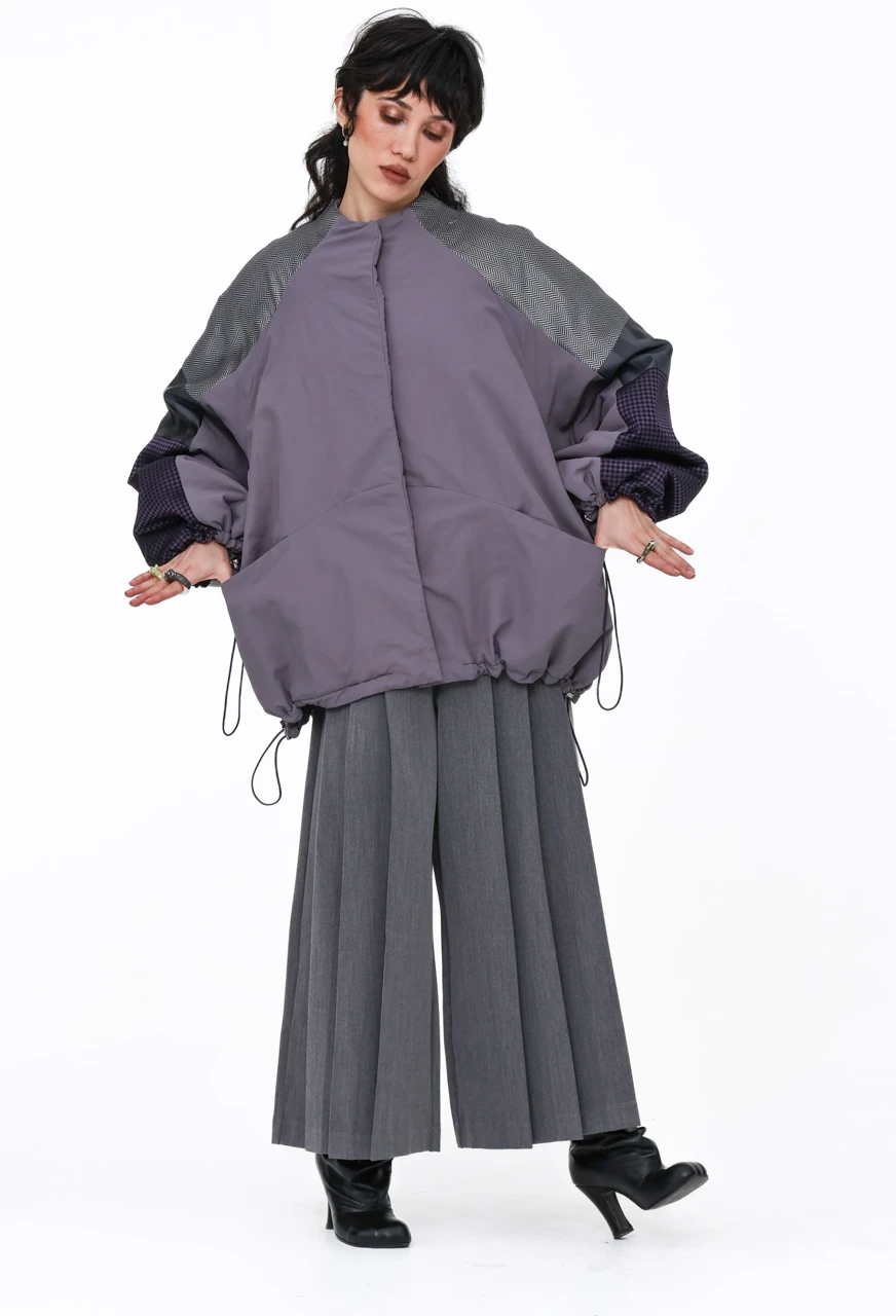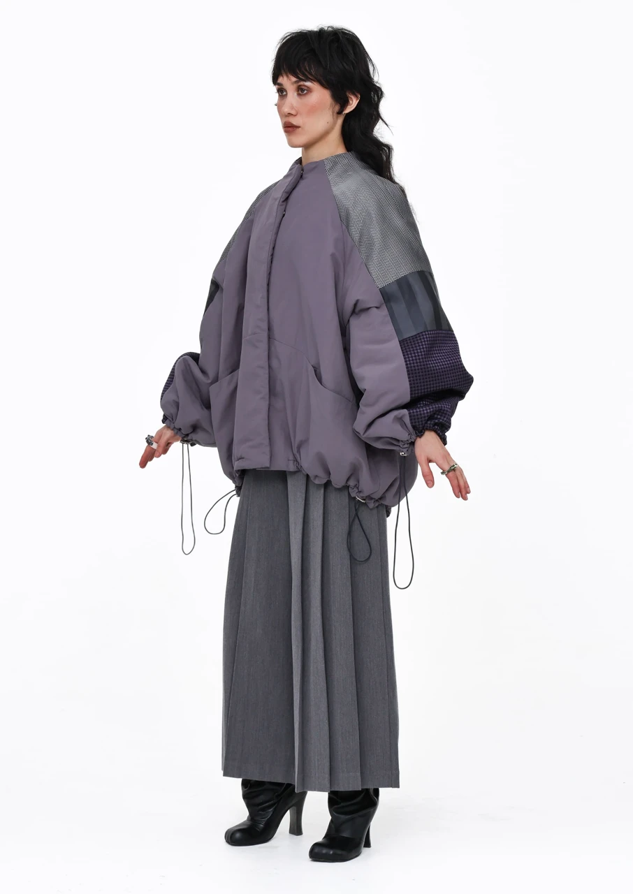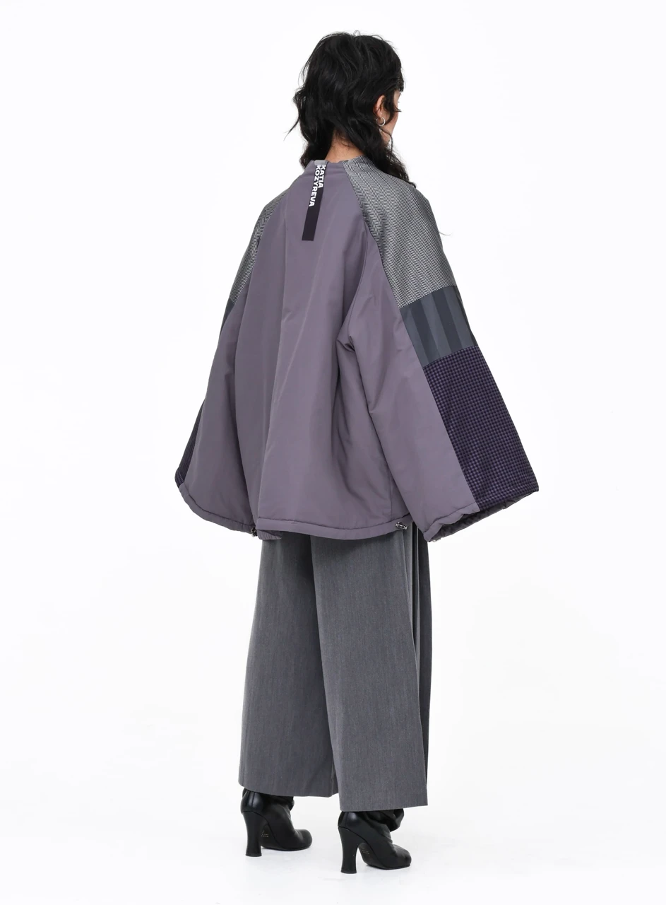 Перед вами пазл-бомбер, один из дропа утепленной пазл-одежды бренда Katia Kozyreva. Всего в серии 16 бомберов и 6 длинных утепленных кимоно. Рукава каждого изделия собраны вручную Катей Козыревой из разных кусочков ткани, как пазл. Повторяющихся нет! Изделие имеет кулиски по низу и на рукавах. Вы можете играть, создавая объемные формы, или носить свободно, не используя кулиску.