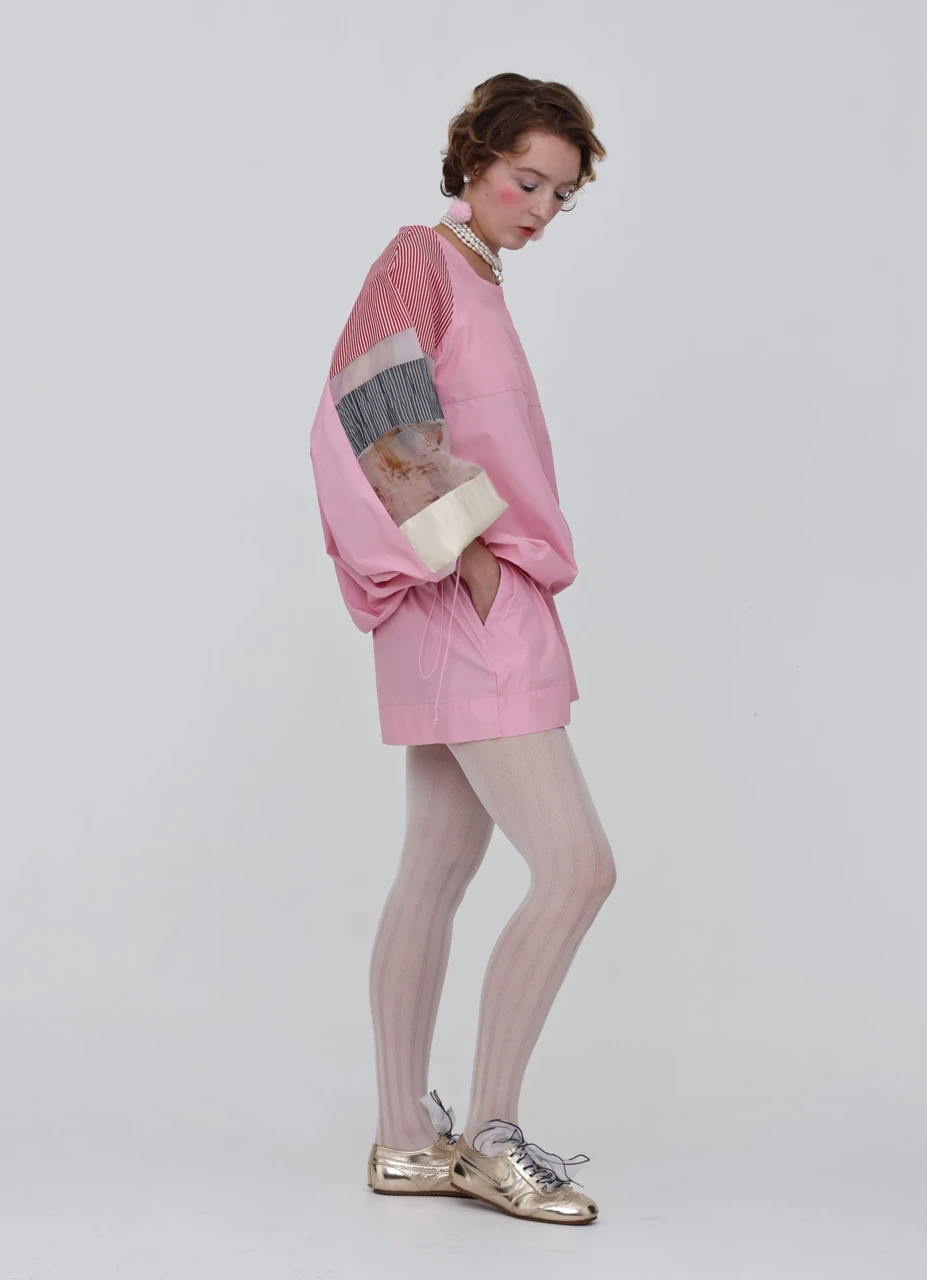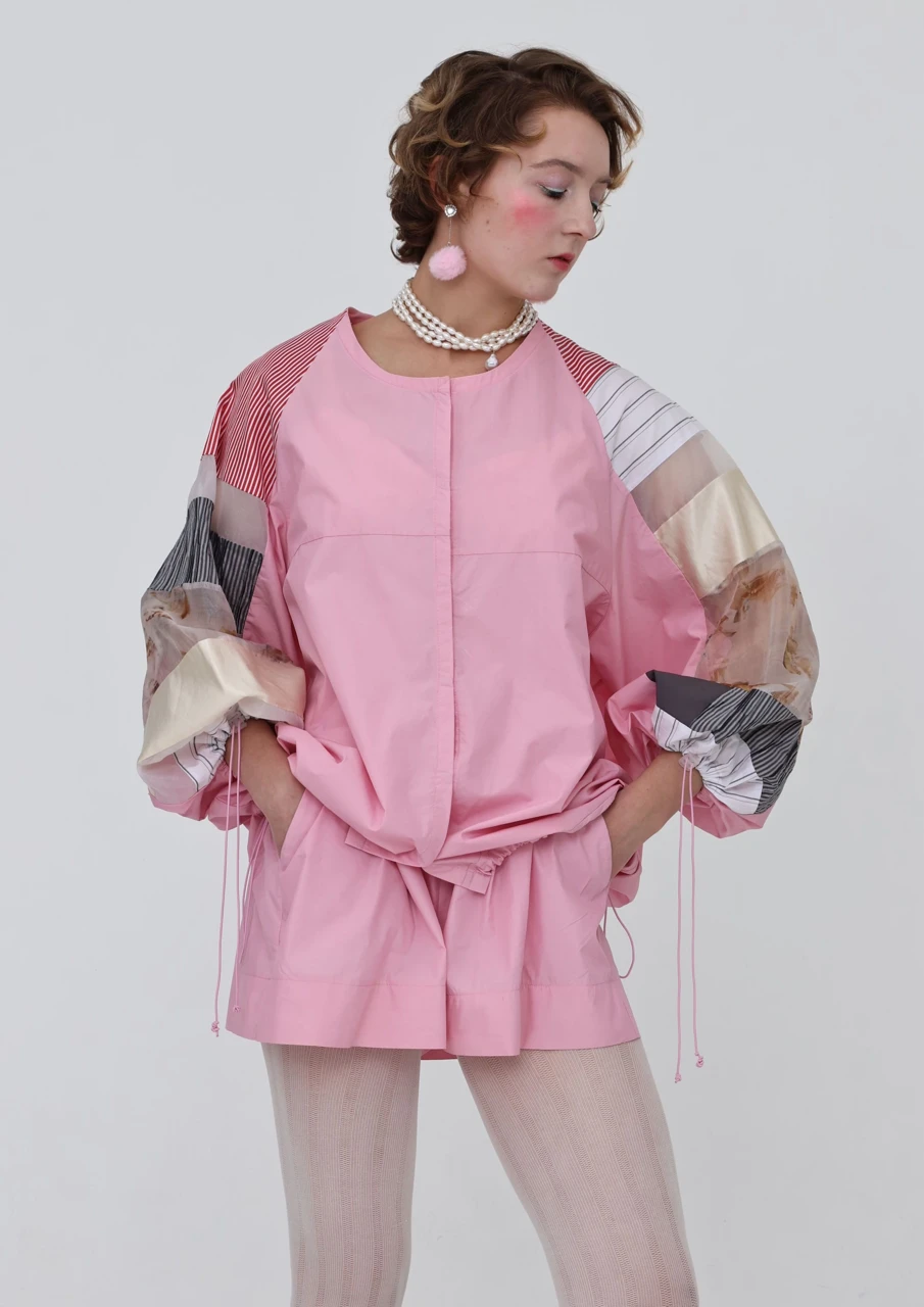 У каждого изделия в этой серии есть кулиски по низу и на рукавах. Вы можете играть, создавая объемные формы, или носить свободным.