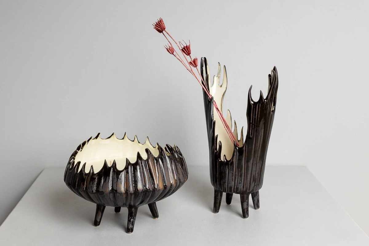 Объект из серии «хищных» форм от Ceramum — выразительная, немного дерзкая керамическая чаша, которая будто живая. «Арма» сделана вручную и получилась почти как персонаж — со своей пластикой, настроением и странной симметрией. Хорошо смотрится одна, но особенно эффектна в паре с чашей «Дионея» — вместе они будто из одного фантастического мира.