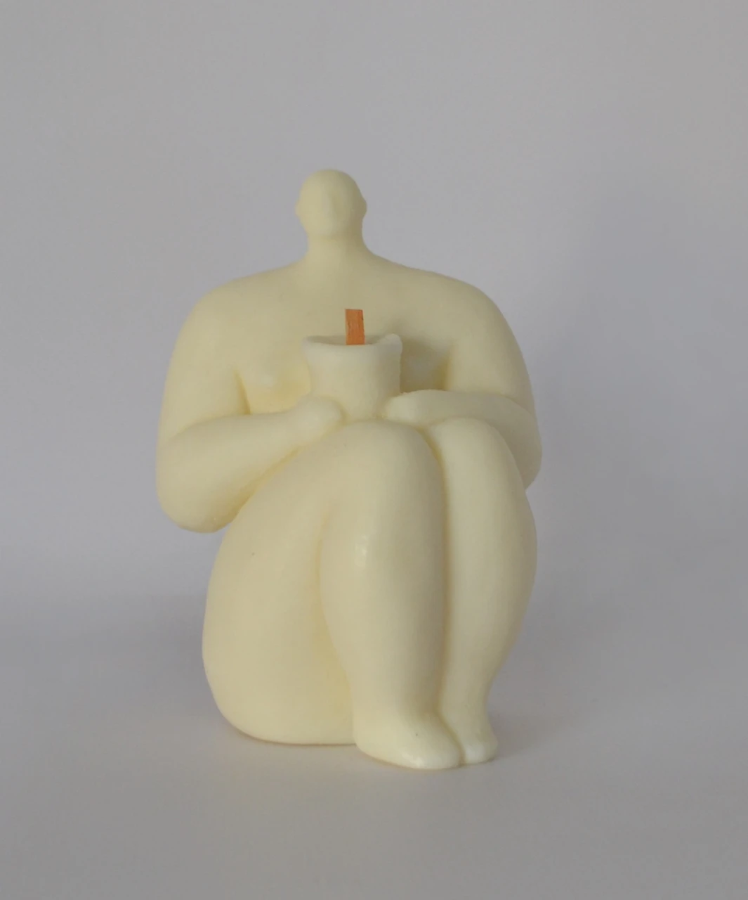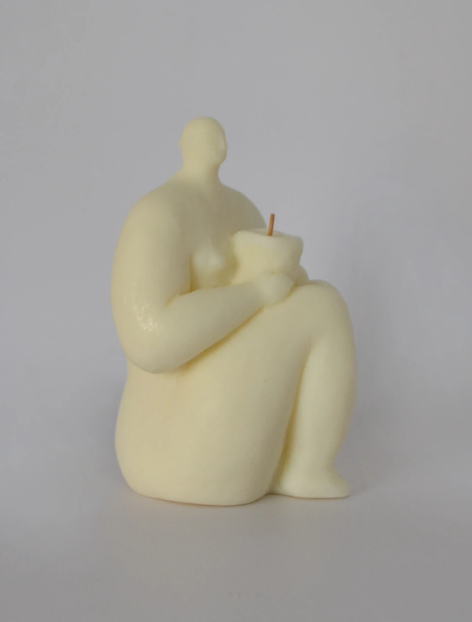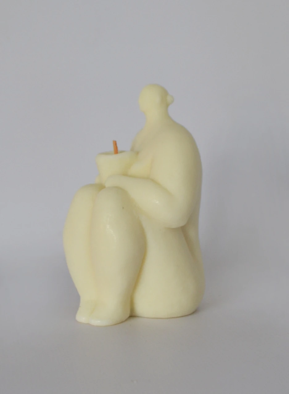 Серия скульптур-свечей создана по мотивам образа древней богини Весты — хранительницы очага, несущей свет, уют и тепло в дом. Свеча выполнена из натурального растительного воска, при горении не имеет запаха гари, а лишь легкий, почти нейтральный аромат ванили. Фитиль из дерева вишни издает приятный треск, похожий на треск поленьев у костра.