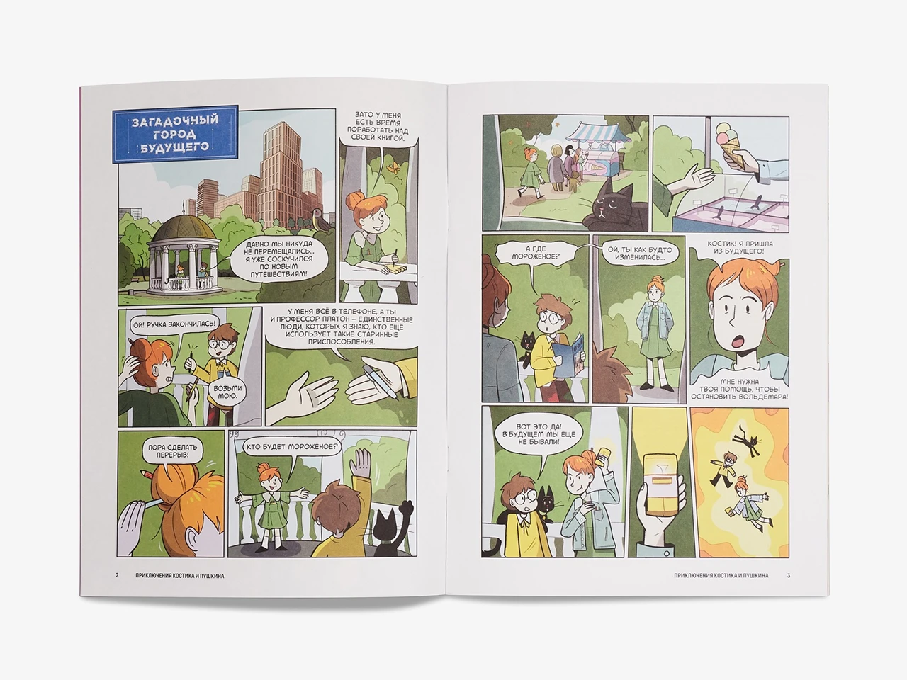 Действие комикса впервые происходит не в прошлом, а в будущем. Именно туда злодей Вольдемар переносит самых талантливых деятелей мировой истории, чтобы они построили для него идеальный город. Коварный план практически исполнен, но в последний момент Костик, Сашка и Пушкин, а также камео этого номера — Лидия Комарова, одна из первых женщин-архитекторов в отечественной истории — спасают похищенных художников, изобретателей и зодчих.