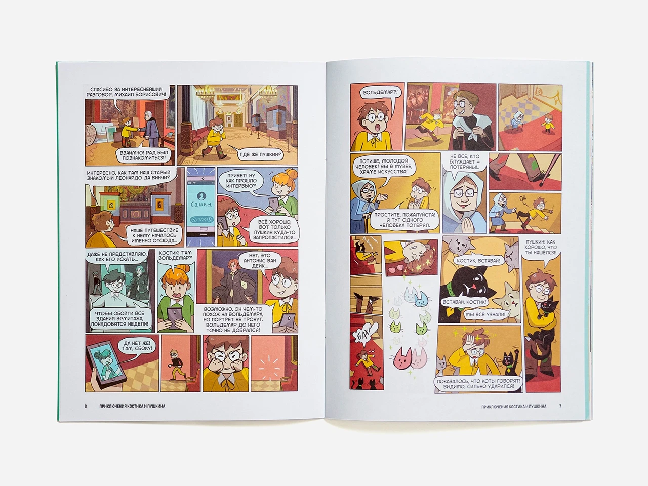 Своё расследование герои ведут не одни. В этот раз им помогают бессменные стражи Эрмитажа — известные на весь мир коты. И даже сам…Михаил Борисович Пиотровский — легендарный директор музея. Кстати, Костик успел ещё и интервью у него взять!