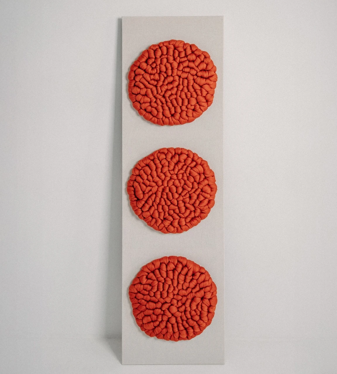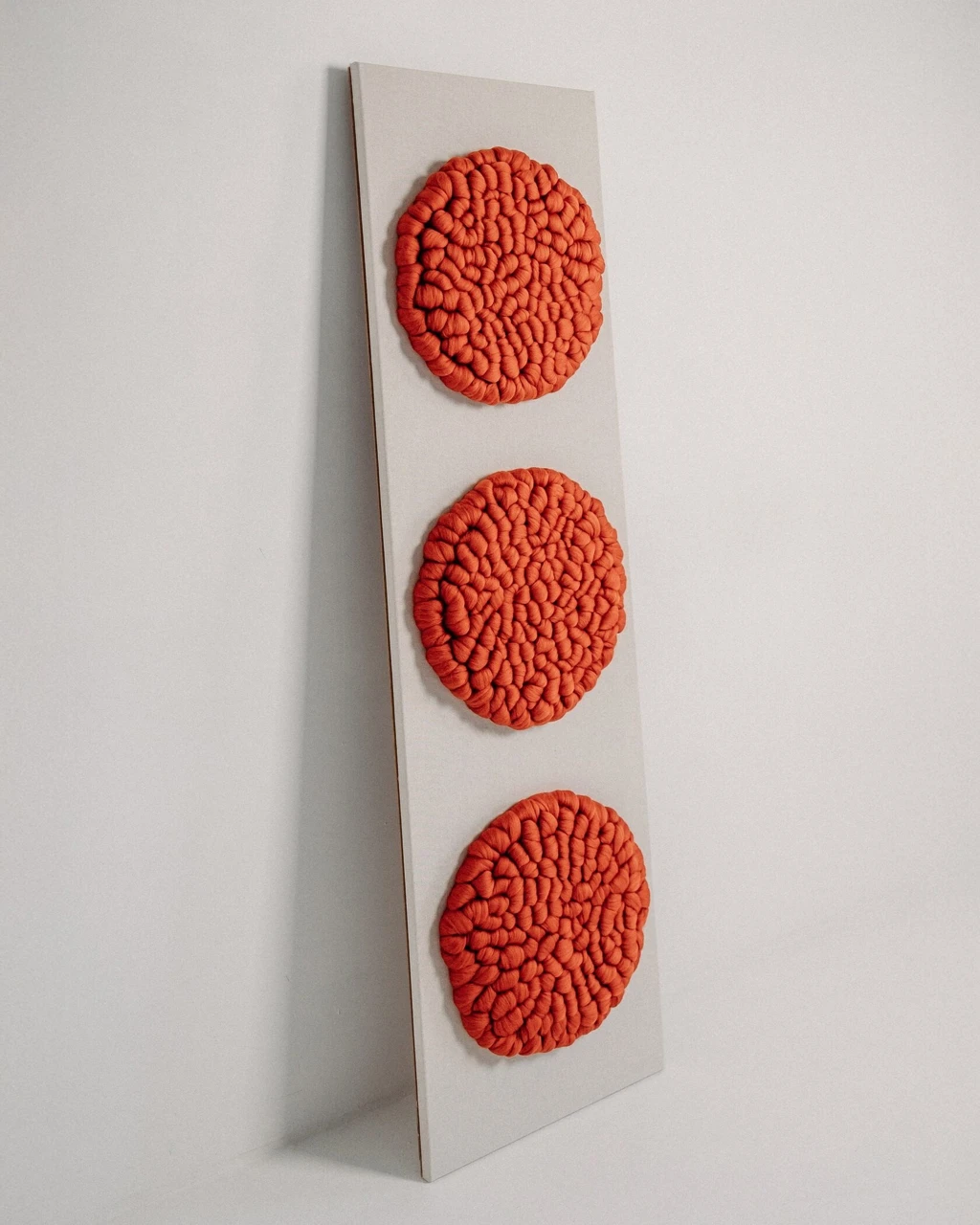 Панно «Терракот» — это выразительный элемент декора, который привнесёт в интерьер тепло природных оттенков и ощущение уюта. Выполненное из мягкой мериносовой шерсти, оно выделяется объемной фактурой и глубоким терракотовым цветом, создающим атмосферу спокойствия и гармонии.