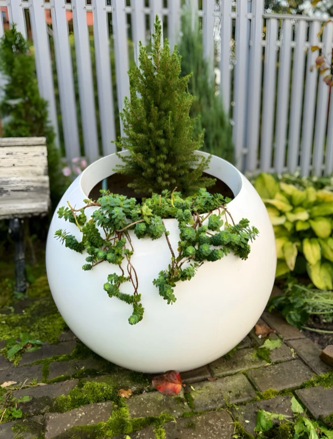 Кашпо Шар — это малая архитектурная форма в стиле минимализм, имеющая форму шара и изготовленная из первоклассных композитных материалов. Оно отлично подходит для использования в уличном и садово-парковом ландшафтном дизайне, придавая пространству современный вид.
