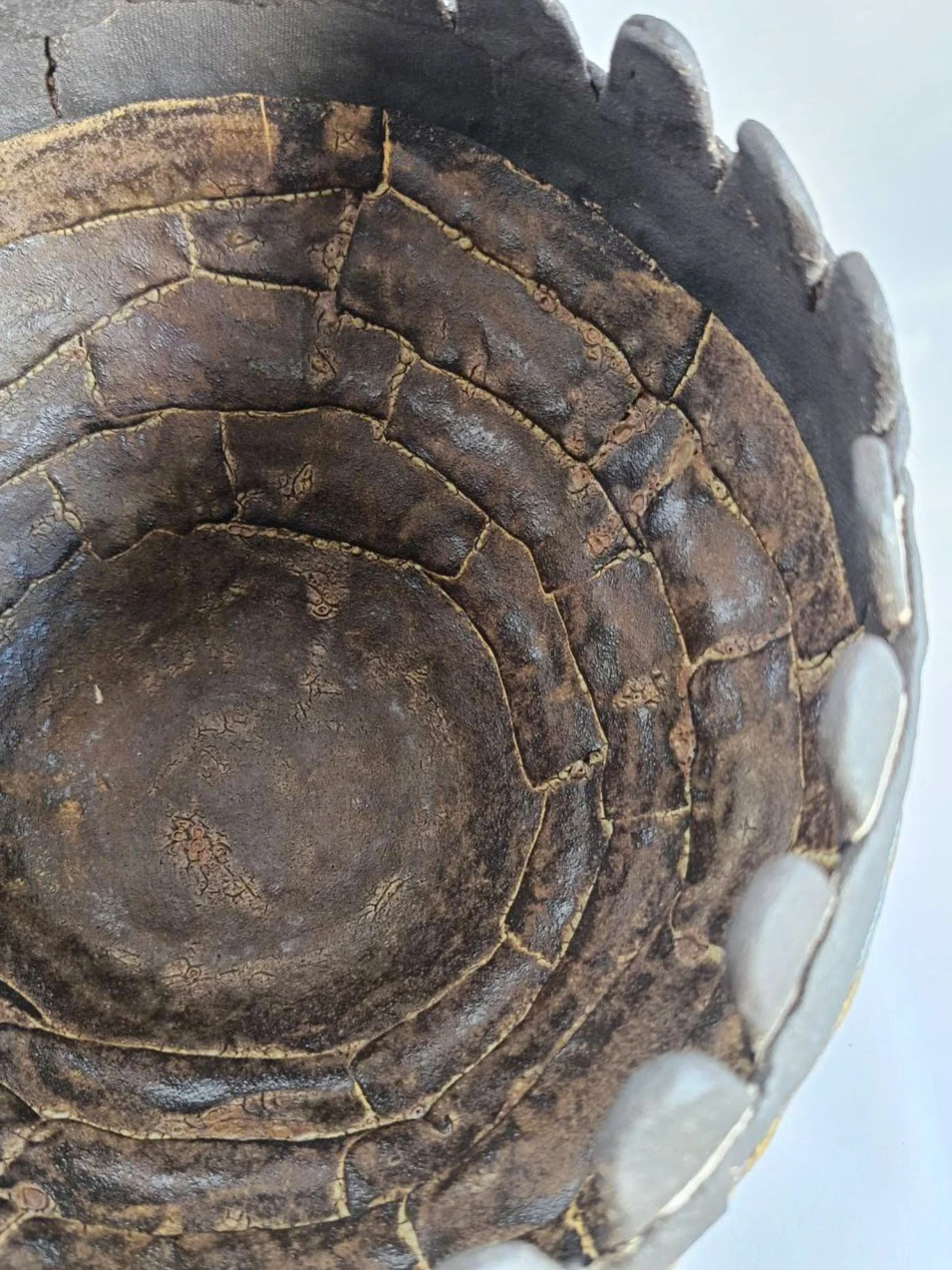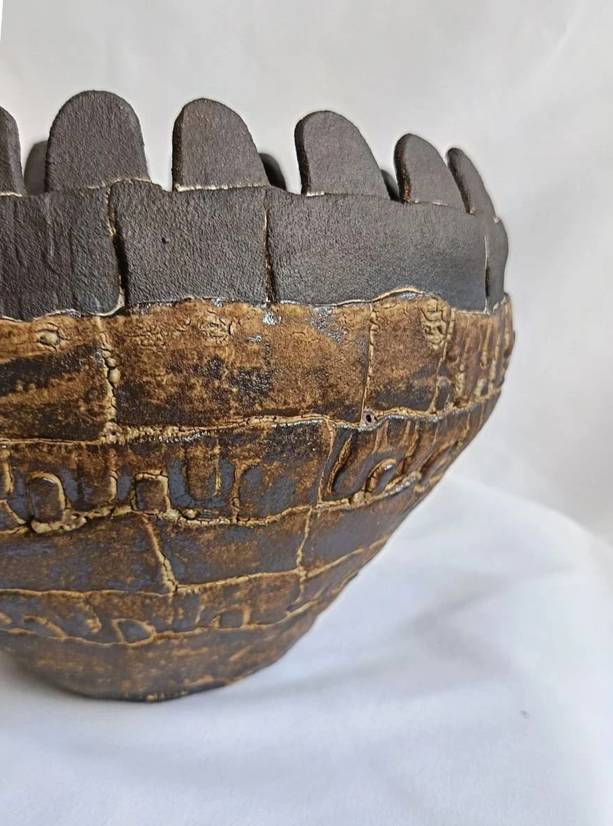 Глазурь глубокого оттенка «сваренный кофе» ложится неравномерно, создавая эффект благородной потертости, а кое-где сквозь нее пробивается медный блеск и кракелюры.