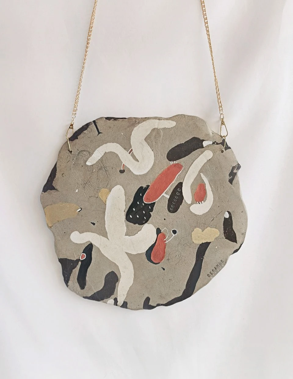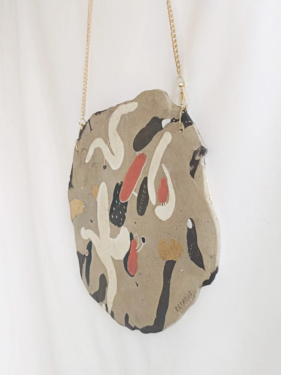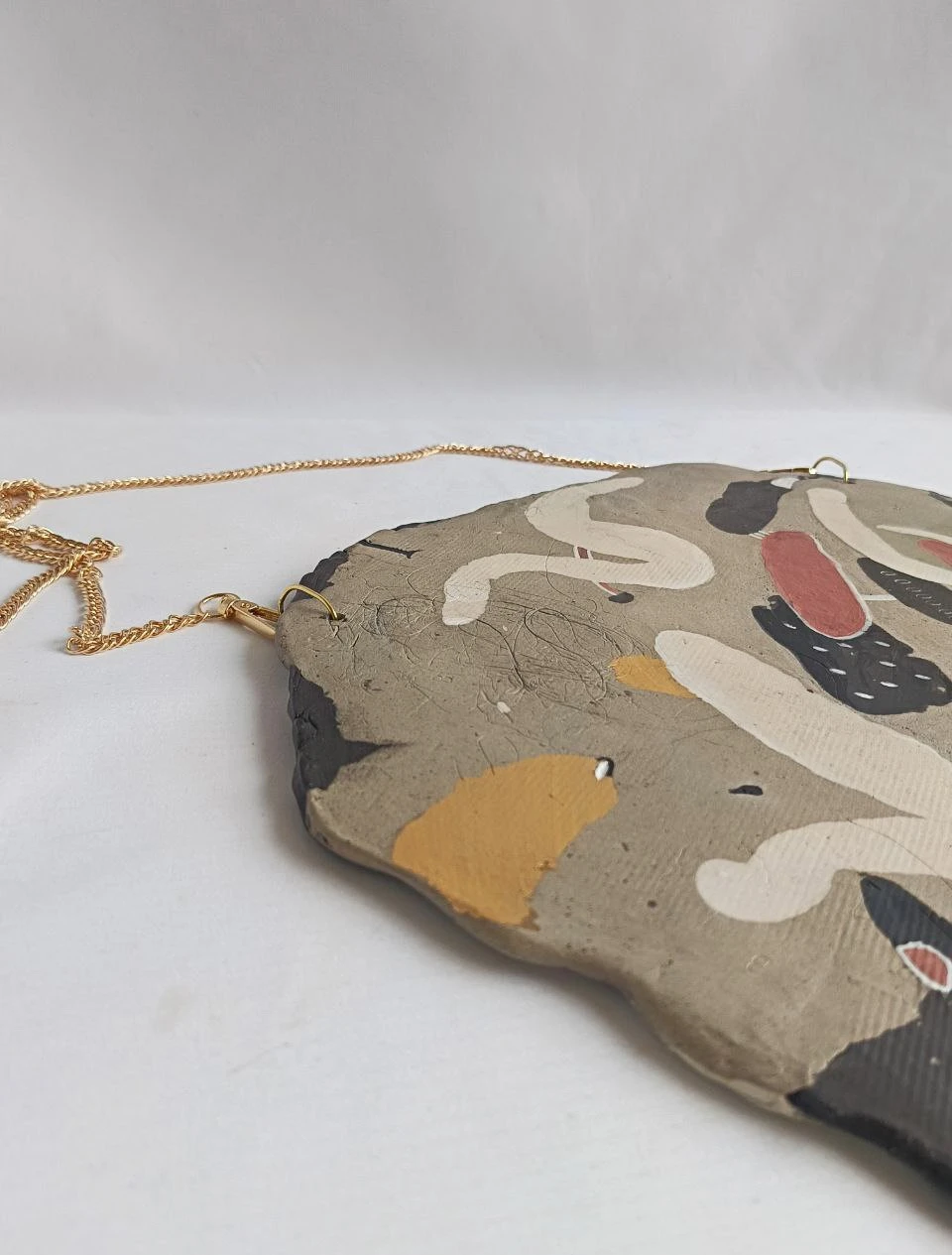Панно подвешено на изящную металлическую цепочку золотистого оттенка, что завершает современный эстетичный образ.