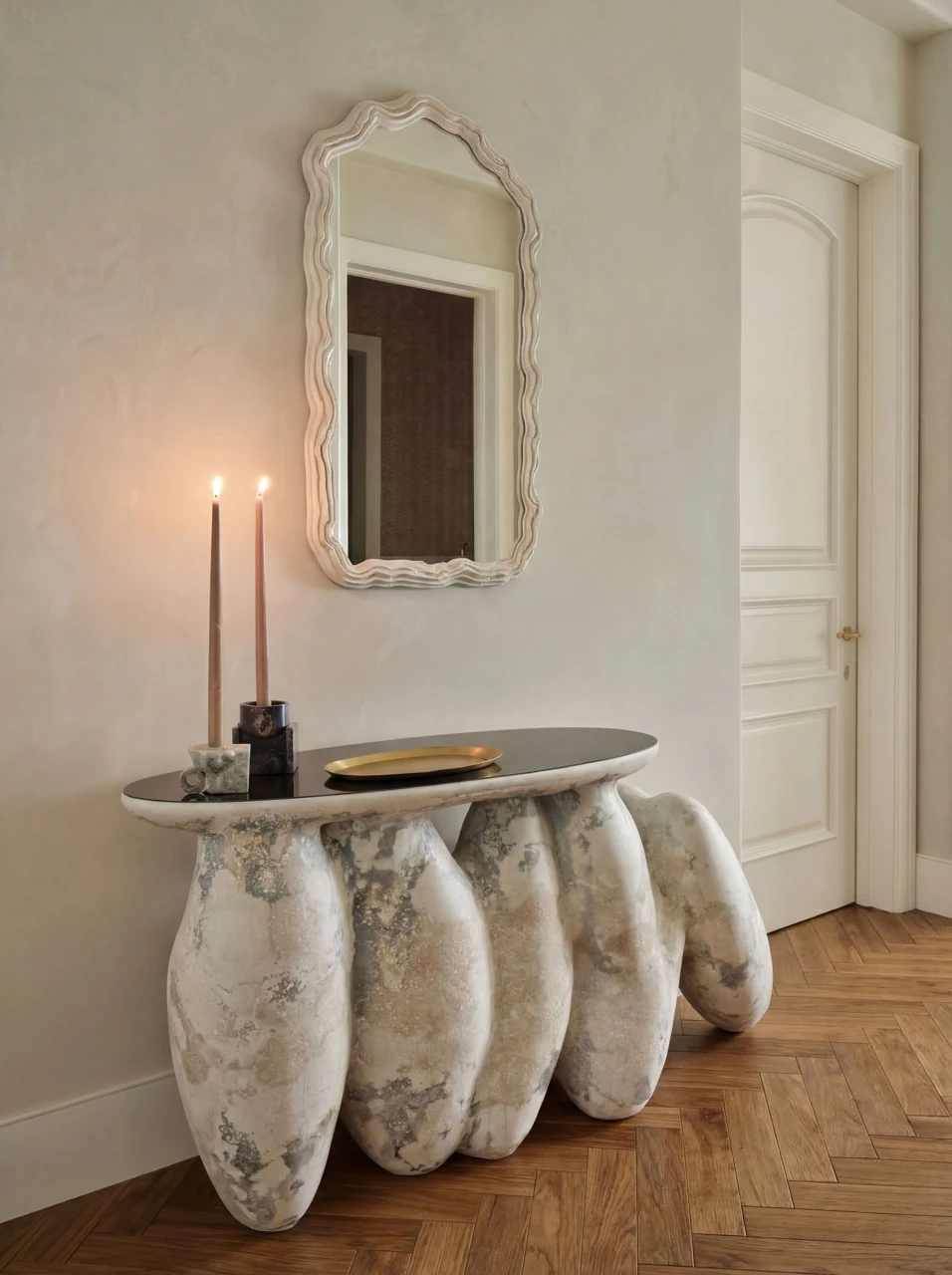Предметы из коллекции сделаны из минерально-композитной смеси, которую наша команда разрабатывала в течение последних двух лет.