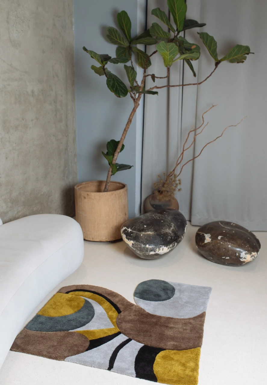 Ковёр-трансформер: под ноги в прикроватной зоне, в ванной, в детской или у кресла, а также — как настенное панно. Округлые, мягкие линии обращают зрителя к стилю модерн. Органика цветовой палитры успокаивает и вдохновляет.