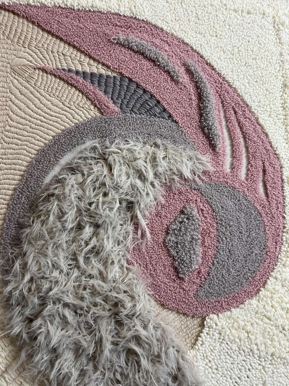 Алина Петухова — автор ковров и ковровых панно в стиле фигуративной абстракции. Работает с темами связи человека с человеком, с самим собой и с окружением. Вторая важная тема — апсайклинг — сохранение памяти людей через вплетение нитей от вещей, бывших в применении, в полотно как арт-объект.