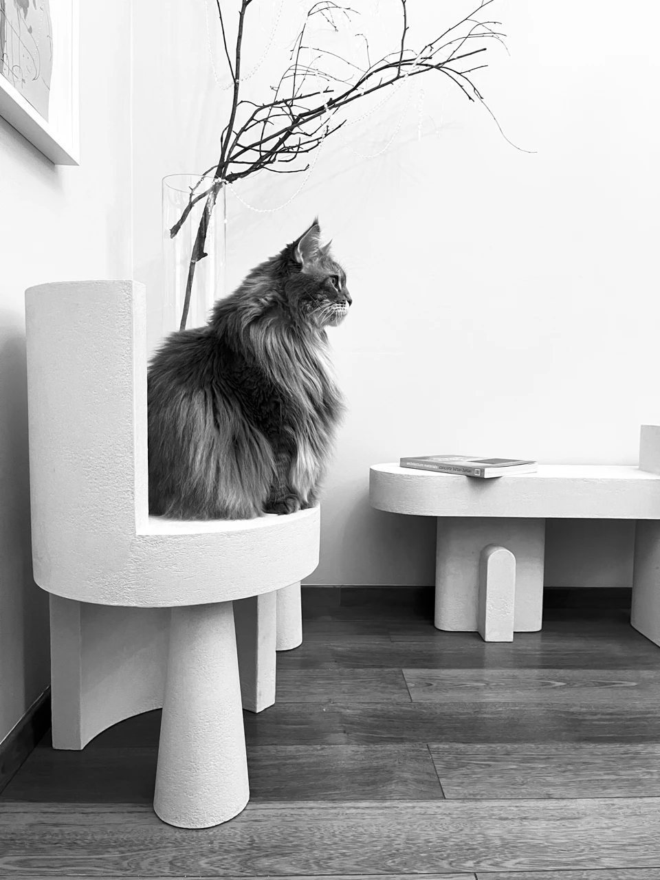 Кресло Геометрика не располагает к долгому сидению, зато располагает к разглядыванию, как настоящий арт-объект у вас дома. Оно выглядит основательно и забавно. А фактурную поверхность микроцемента так и тянет погладить. Такое кресло больше подойдет для общественных пространств, хотя и в жилом интерьере оно займет достойное место.