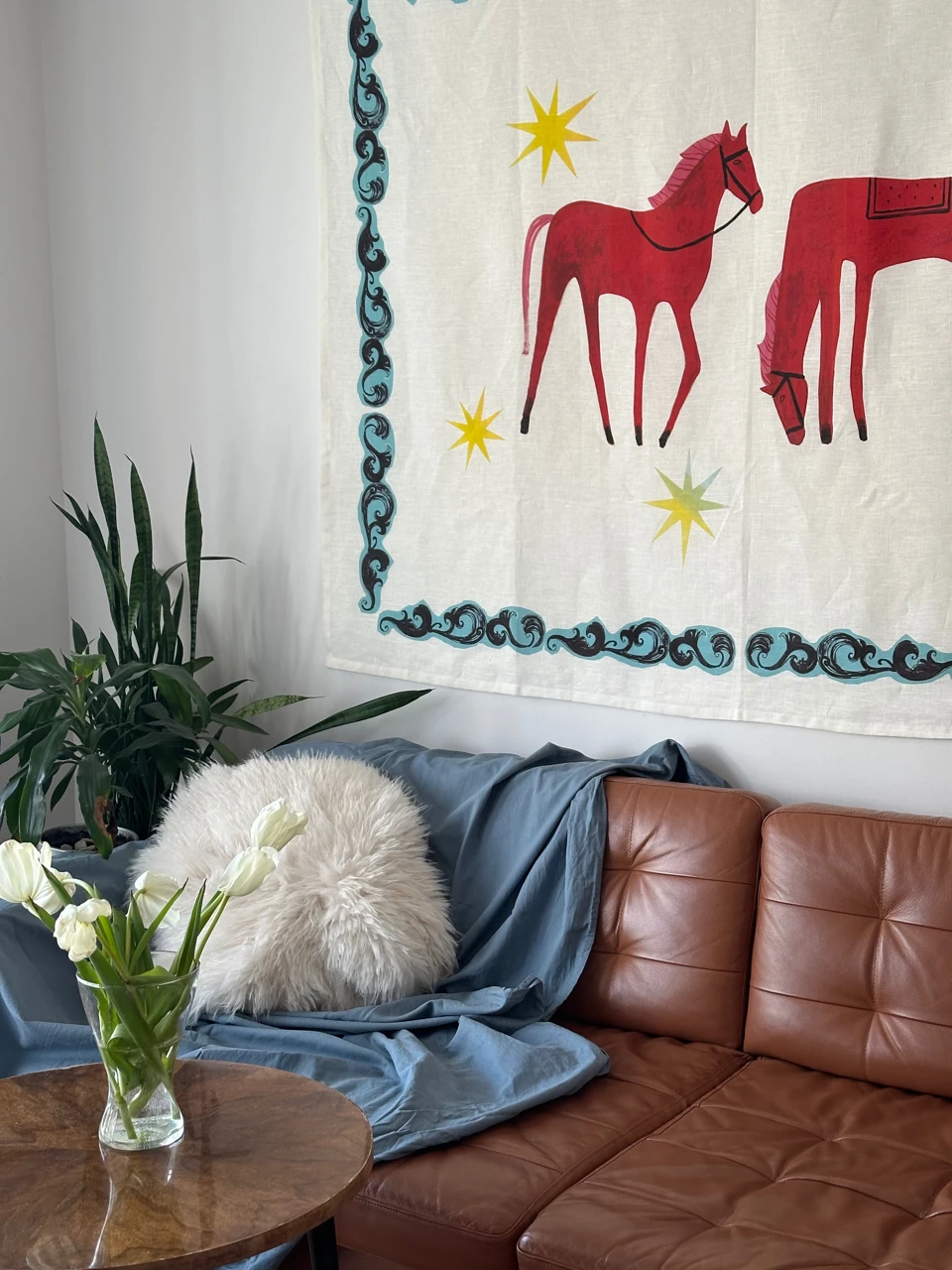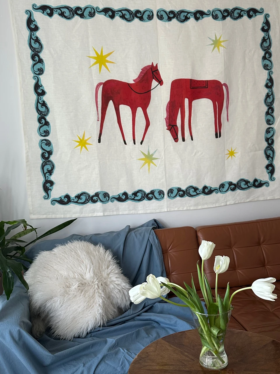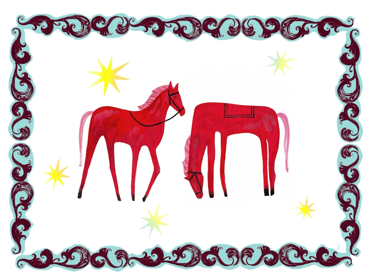 Искусство, которое оживает на вашем столе: оммаж легендарному шедевру Кузьмы Петрова-Водкина. В центре композиции — кони каноничного красного цвета, символизирующие солнце, преданность и энергию.