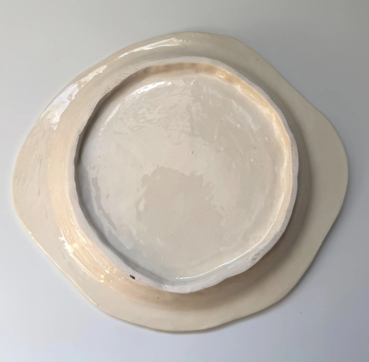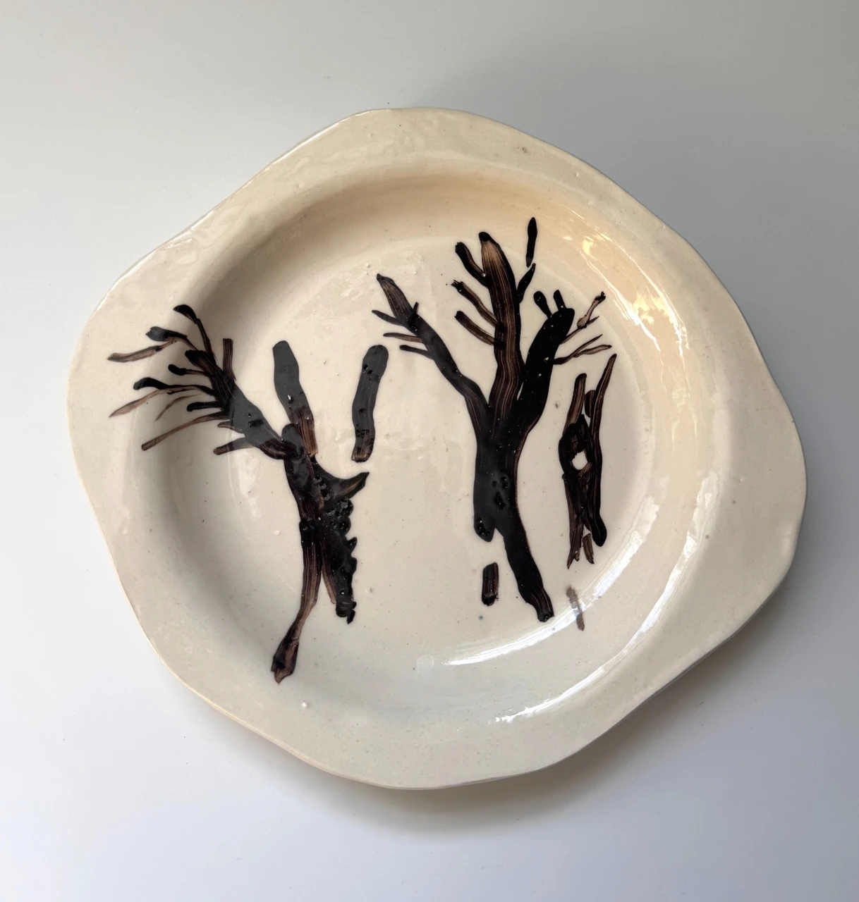 Тарелка «Лес зимой», на которой снег — главное пространство и только черные ветви и стволы деревьев контрастируют с ним.