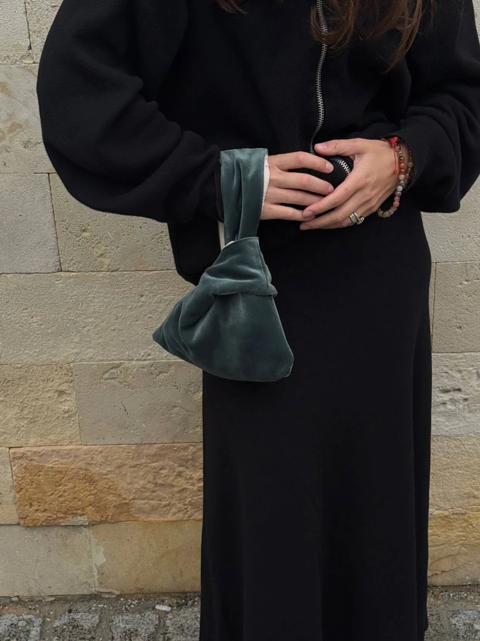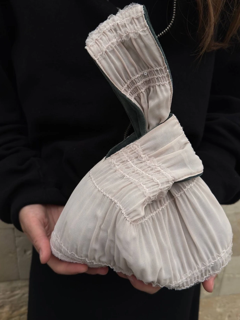 Двухсторонняя сумочка-узелок на запястье.