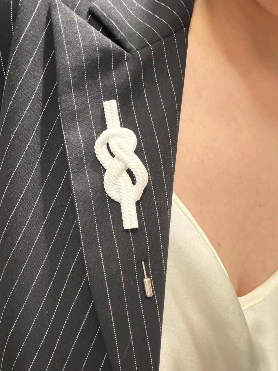 Образ броши навеян старыми коллекциями Chanel, это оммаж модному дому и его эстетике. Также это символ любви и связанности двух судеб в одну.