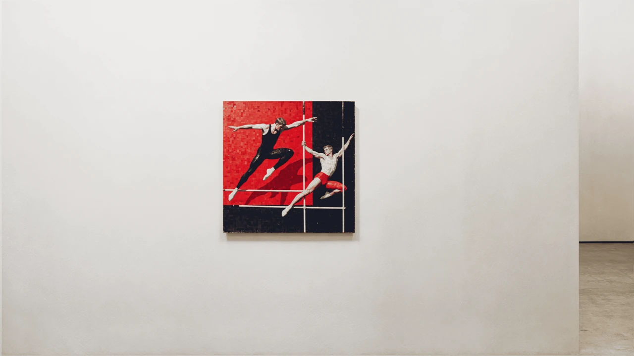 Мозаика, собранная из множества точных фрагментов, становится здесь визуальной метафорой его подхода — когда из отдельных элементов рождается цельное, живое движение.