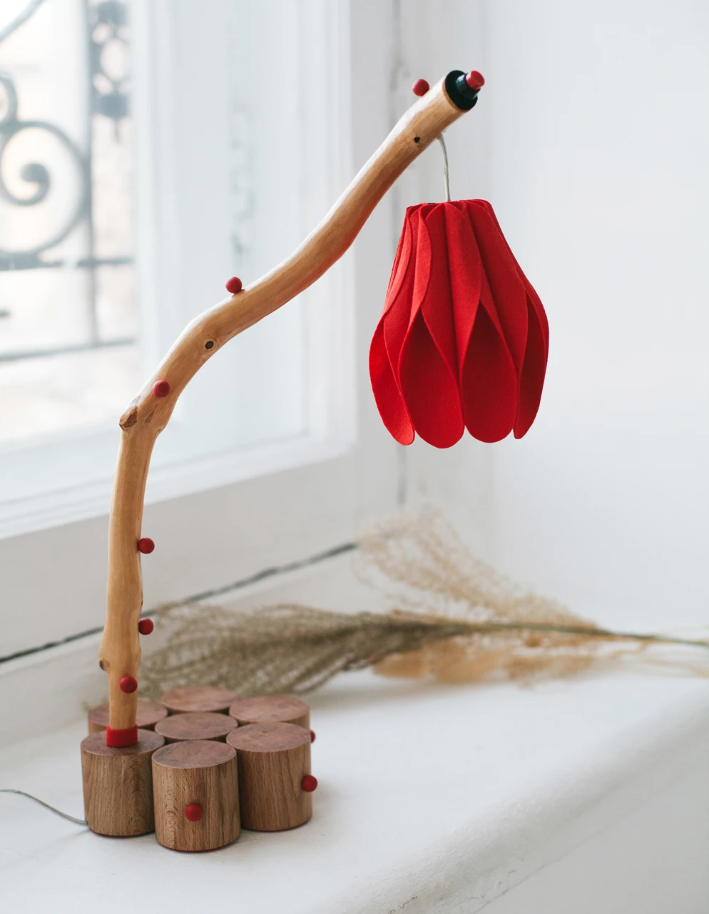 Кроме того, лампа получилась очень игривой — маленькие красные декоративные элементы в виде лесных ягод поднимают настроение и делают любое рутинное дело более приятным, ведь когда вас окружают красивые вещи, жизнь становится чуть лучше, а сегодня это так важно!