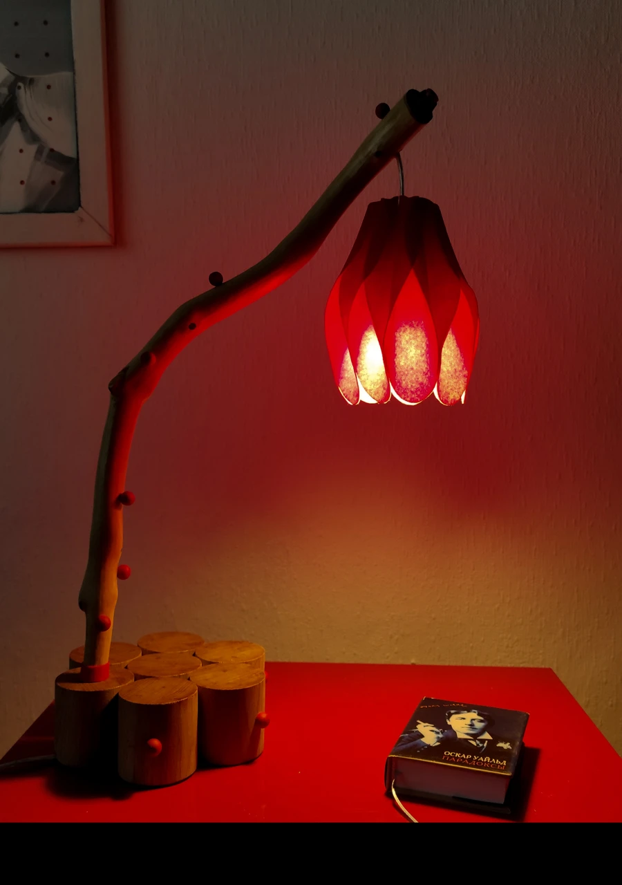 Это наша первая настольная лампа с выносом кнопки включения на торец колонны. Необычно, технологично, удобно и стильно!