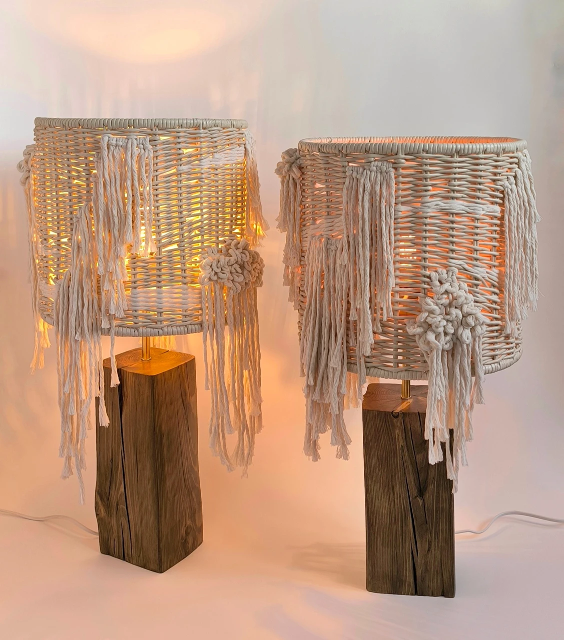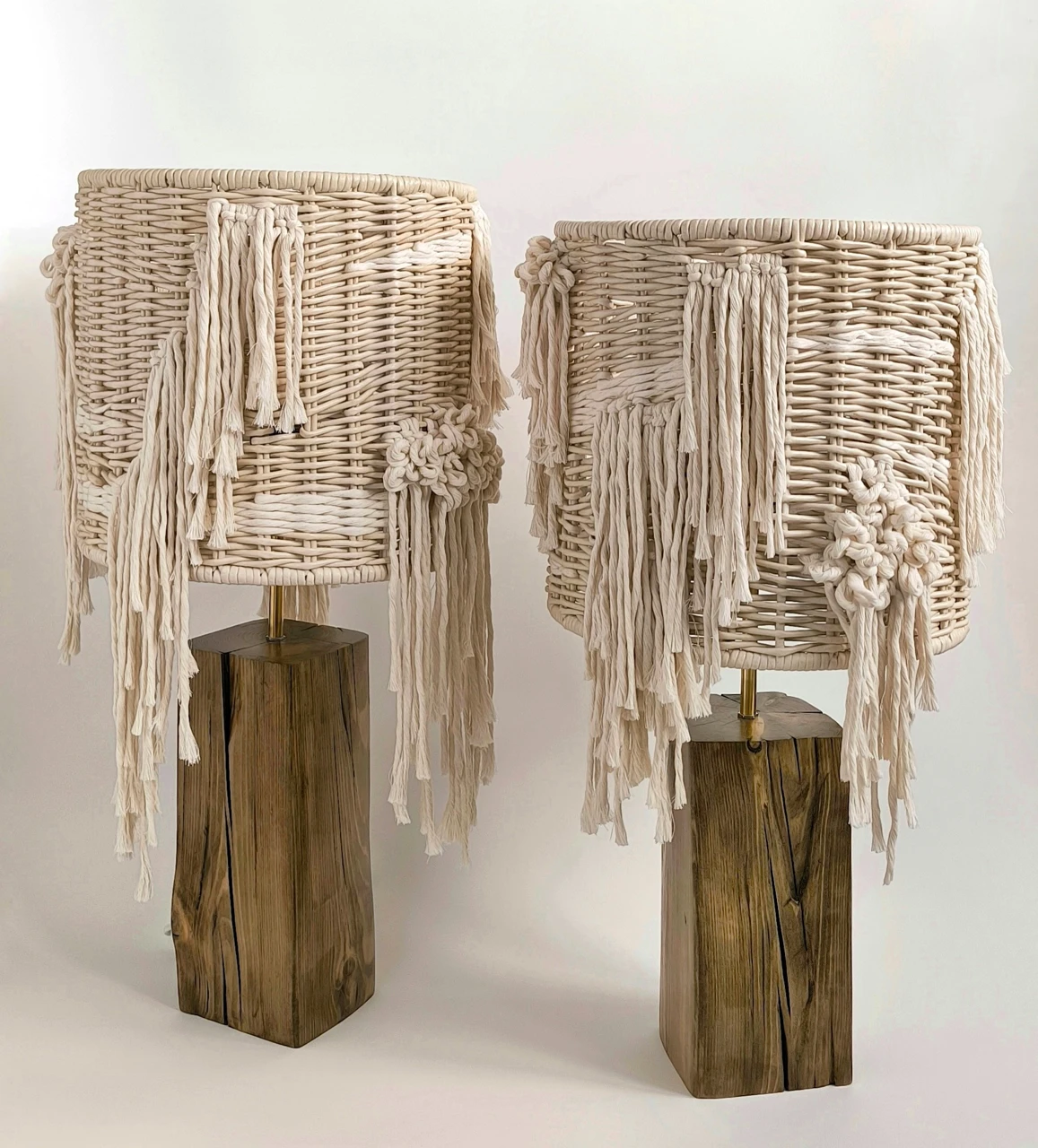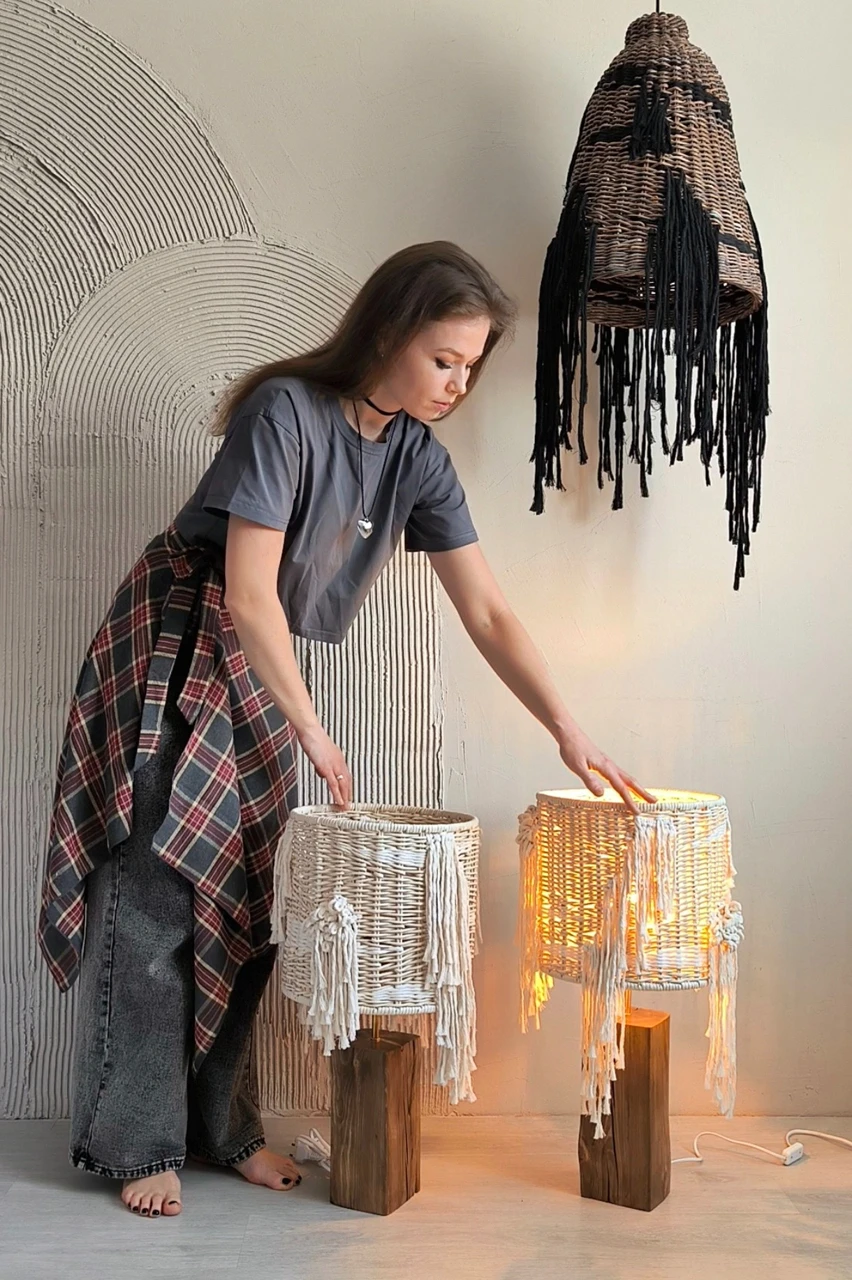 Автор проекта вдохновлялась контрастами природы и её удивительной способностью сочетать не сочетаемое. Идея светильников родилась из желания объединить два противоположных начала: грубое, брутальное основание, выброшенное волнами на берег Белого моря и нежные, изящные плетёные абажуры с элементами ткачества. Светильники воплощают в себе загадочность моря, его способность быть одновременно мощным и нежным. Технология: в этой работе были использованы совмещенные техники и разные материалы. Абажуры выполнены в двух техниках: плетение из ремесленной лозы и ткачество. В качестве основы светильников было использовано старое дерево (дрифтвуд), вынесенное на берег Белого моря.