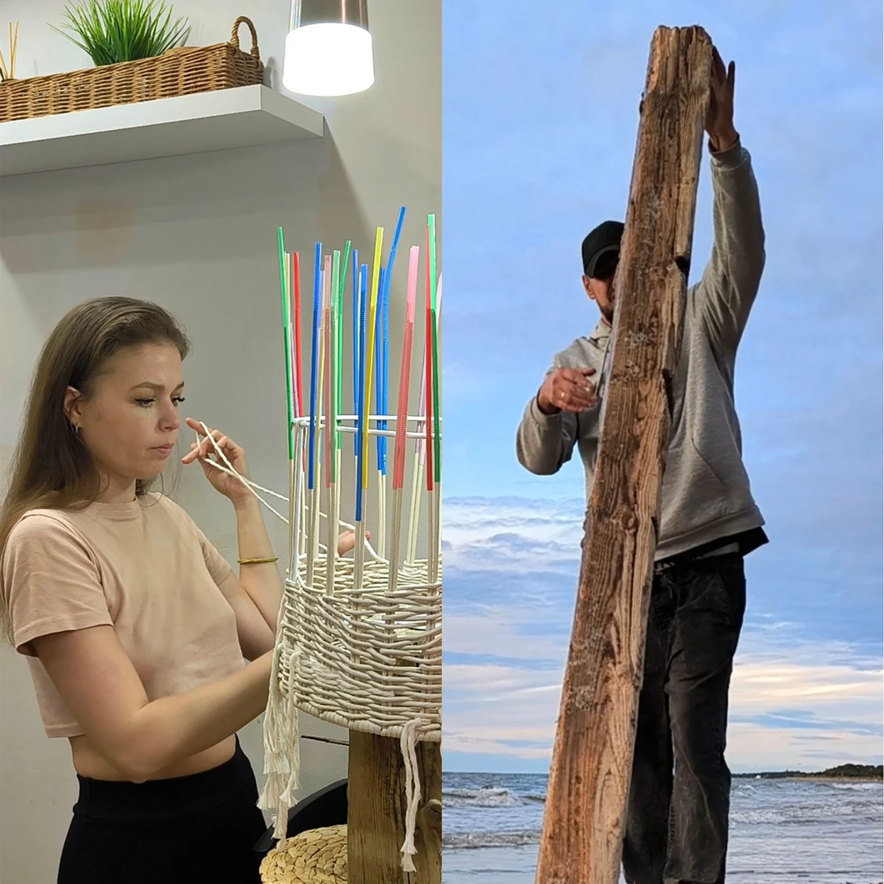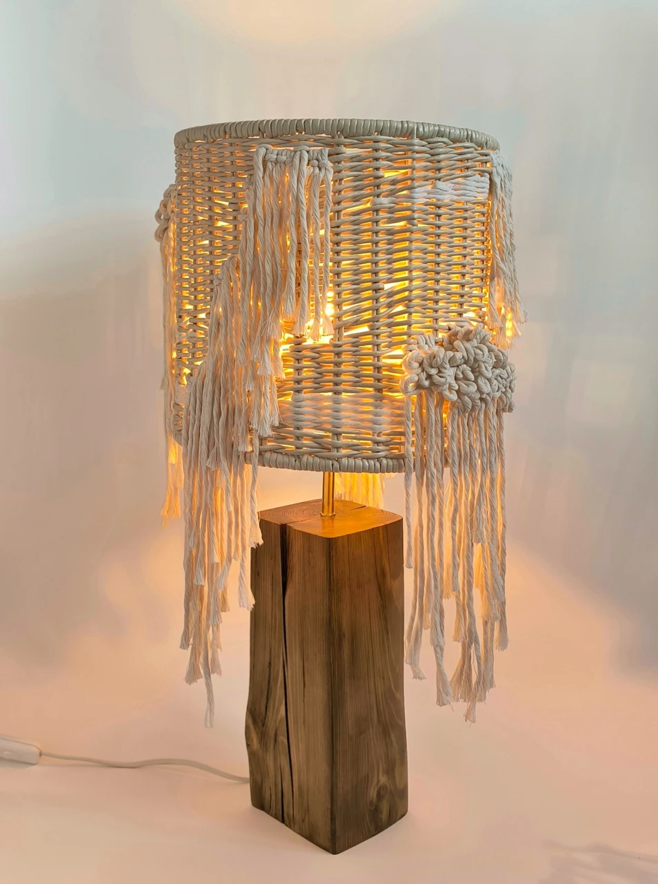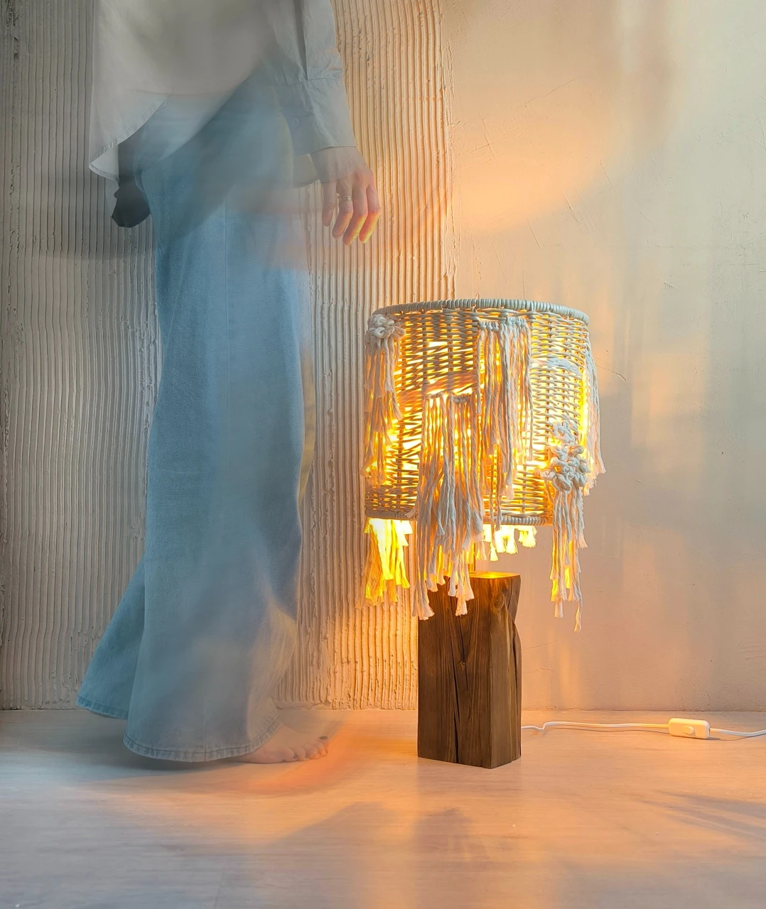 Автор проекта вдохновлялась контрастами природы и её удивительной способностью сочетать не сочетаемое. Идея светильников родилась из желания объединить два противоположных начала: грубое, брутальное основание, выброшенное волнами на берег Белого моря и нежные, изящные плетёные абажуры с элементами ткачества. Светильники воплощают в себе загадочность моря, его способность быть одновременно мощным и нежным. Технология: в этой работе были использованы совмещенные техники и разные материалы. Абажуры выполнены в двух техниках: плетение из ремесленной лозы и ткачество. В качестве основы светильников было использовано старое дерево (дрифтвуд), вынесенное на берег Белого моря.
