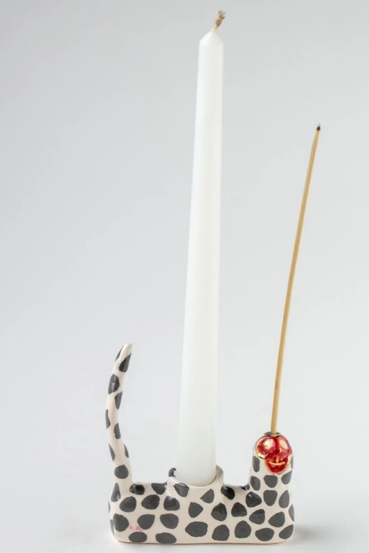 Настольный органайзер в виде обезьяны с длинным хвостом. Керамическая подставка под классическую столовую свечу, благовония и бижутерию.