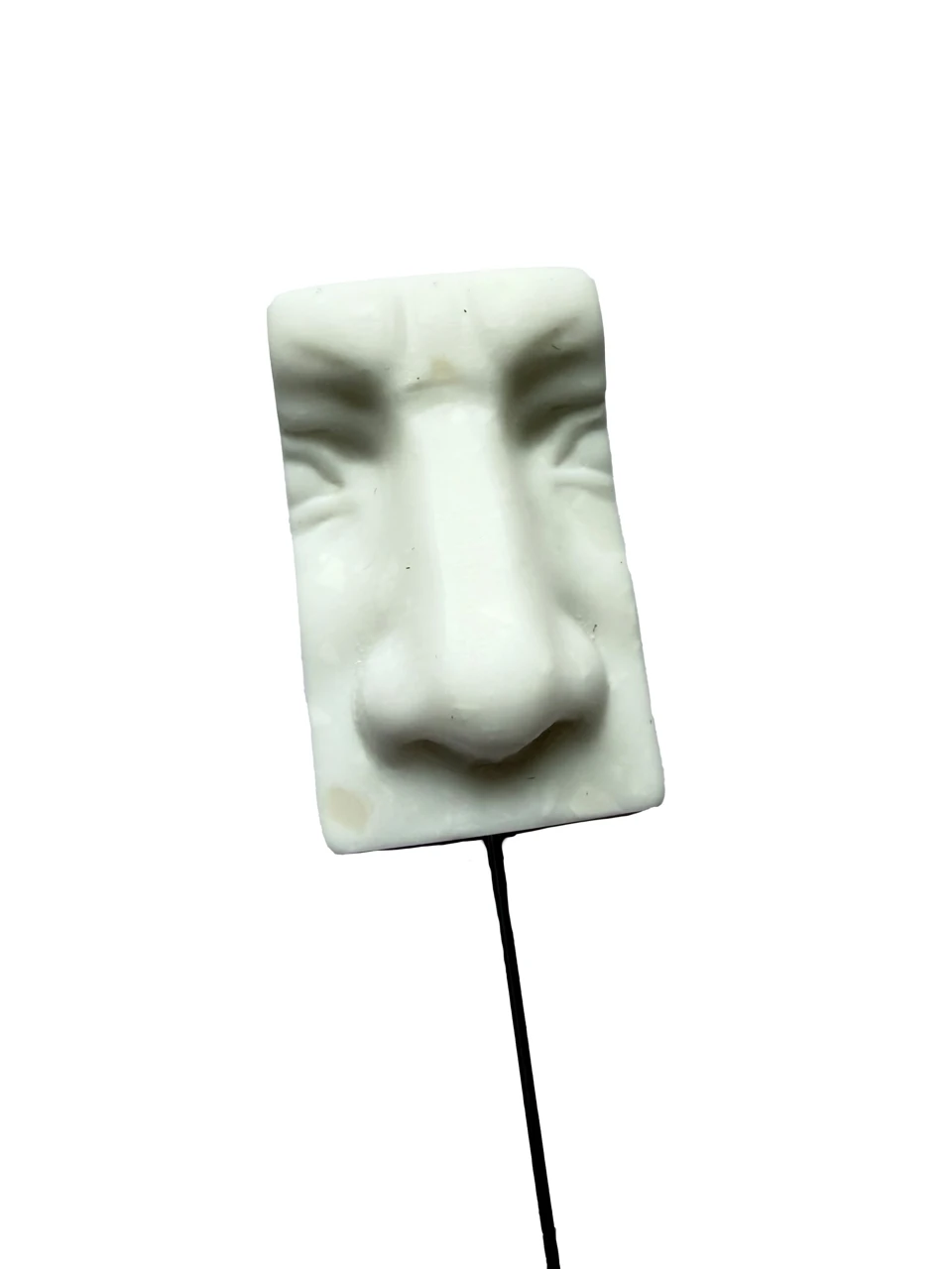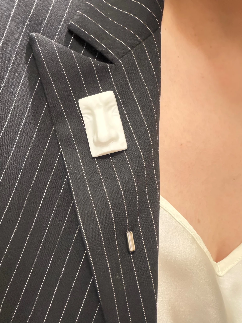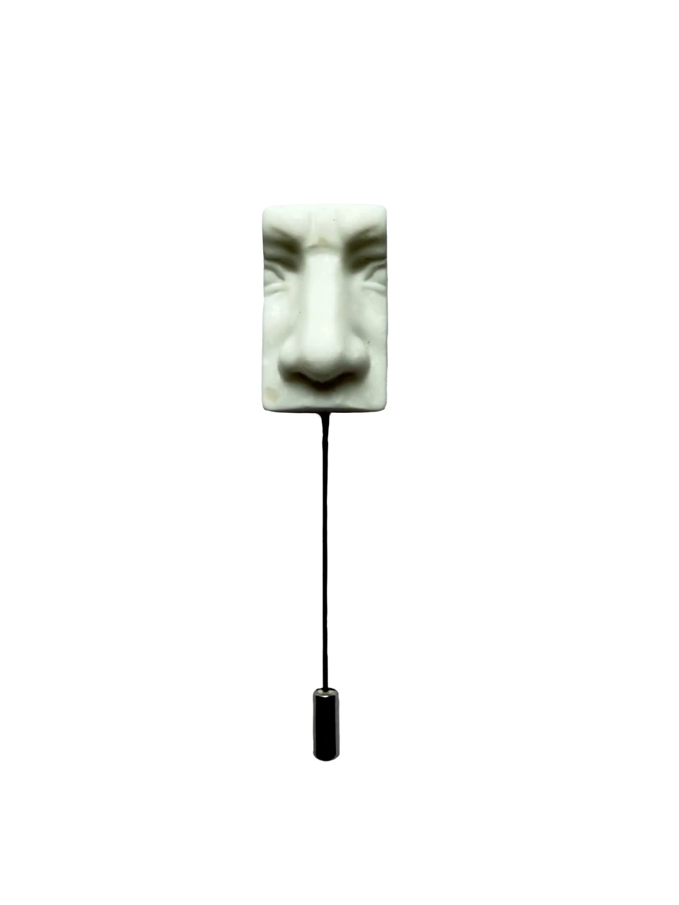 Брошь навеянная великой скульптурой Микеланджело «Давид» , взяв фрагмент скульптуры, отсекли всё остальное , оставив часть лица которая ощущает только запахи.