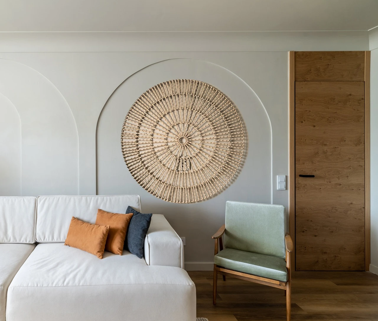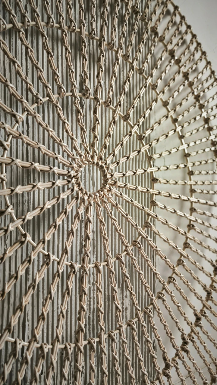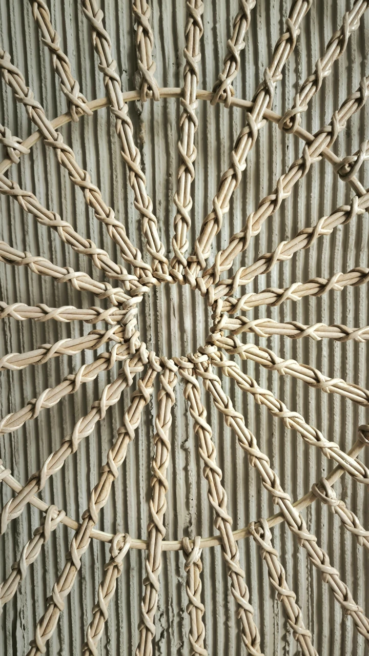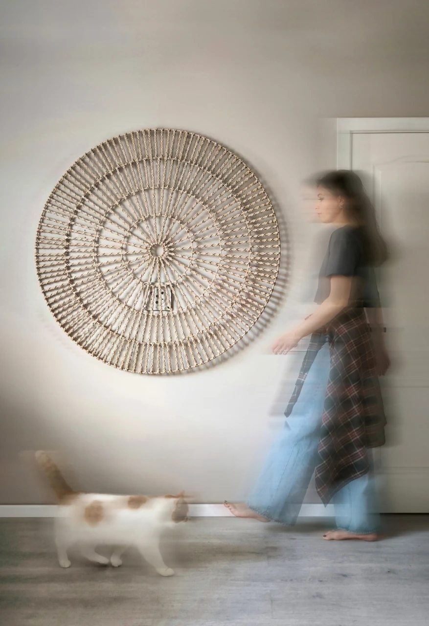 Выразительное круглое панно с ажурным плетением. Геометрический узор и легкая фактура создают эффект объема и делают его самостоятельным арт-объектом. Подойдет для современных интерьеров.